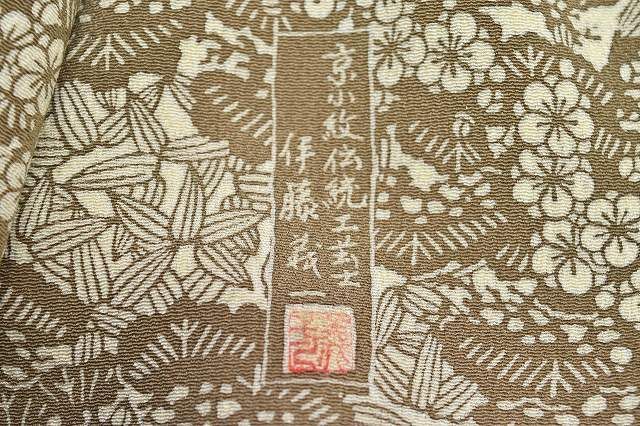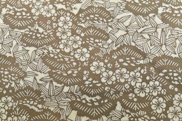 ベージュ色地に松竹梅文様が施された粋な感じの小紋のお着物です。