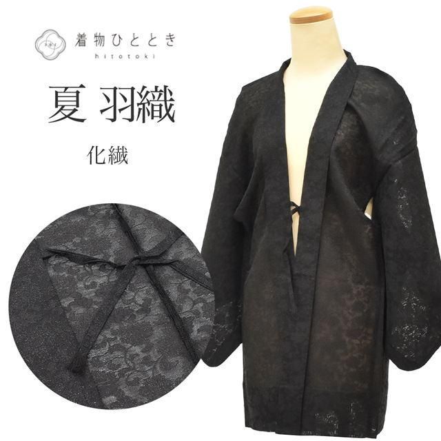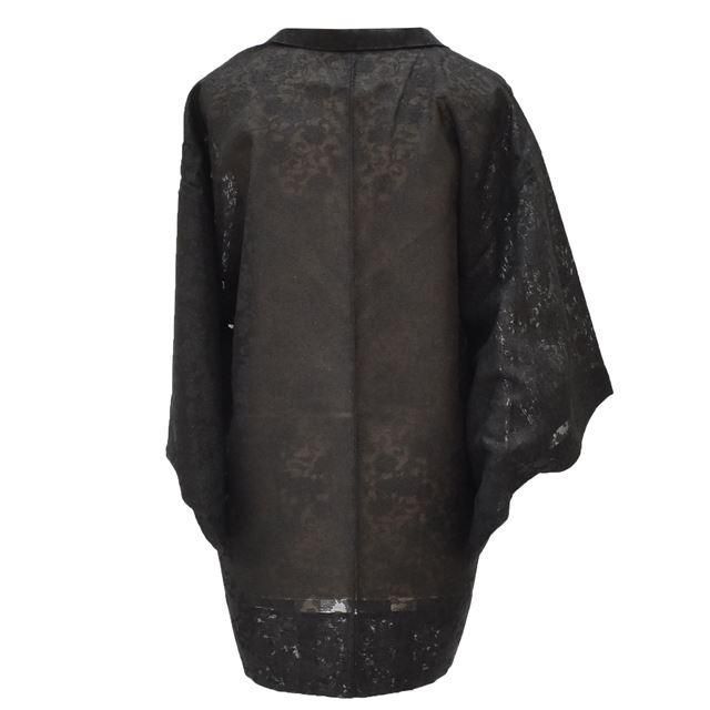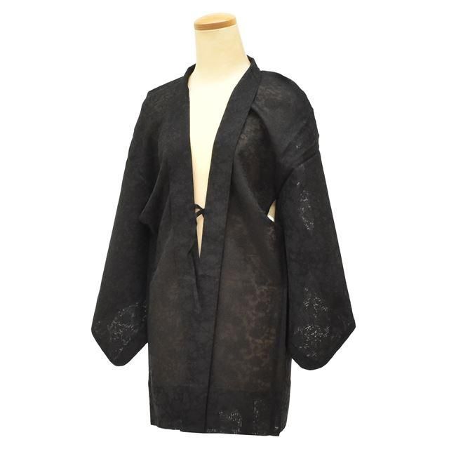 黒色に花唐草文様が施された、リサイクル羽織です。