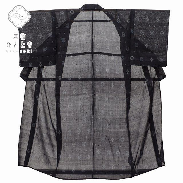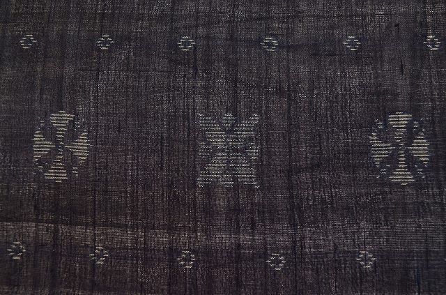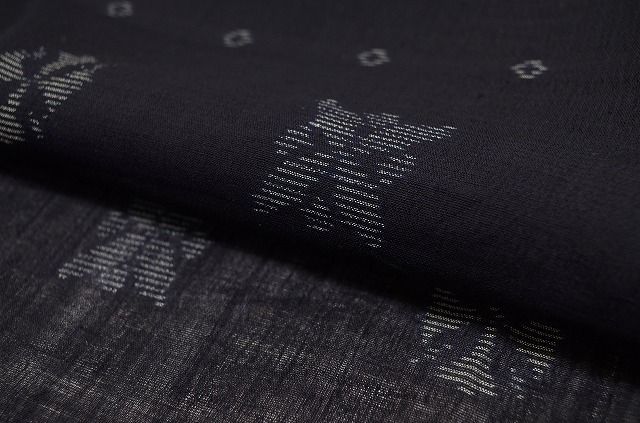 黒色地に花文様が織り込まれた、素朴な味のある紬のお着物です。