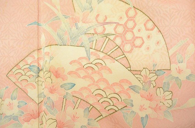 ピンク色に扇文様があしらわれ、華やかさが感じられます。