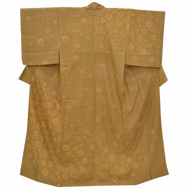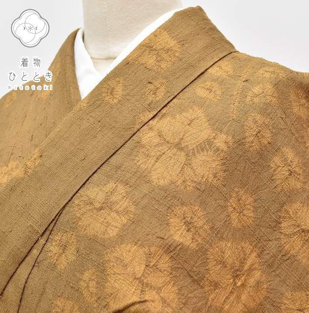茶色地に花文様が施された素朴な味のあるしょうざん紬のお着物です。