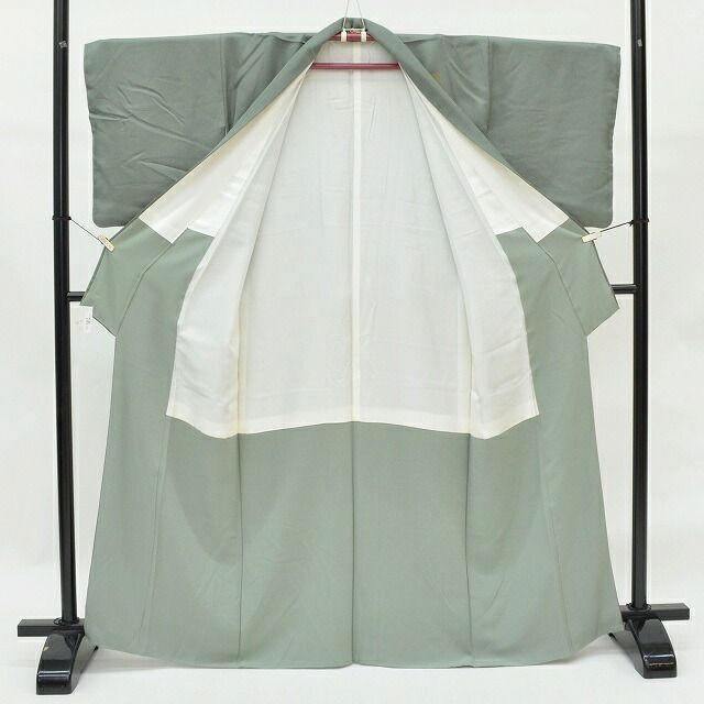 リサイクル訪問着正絹仕立て上がり付下げ紋付袷リサイクル着物リサイクル訪問着裄65cmM身丈157cmMちょっとふくよかL緑色系短冊文様特品★★★★mm3245b