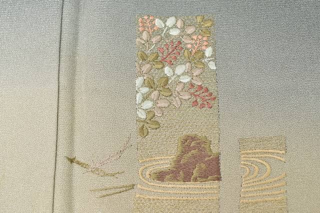 緑色のぼかしに短冊文様があしらわれた訪問着です。