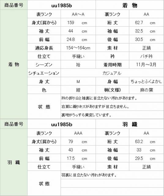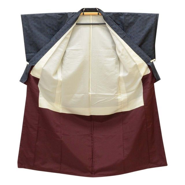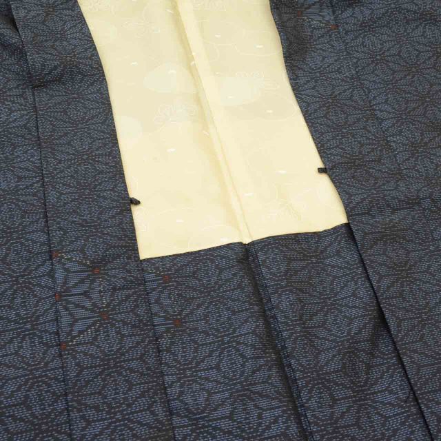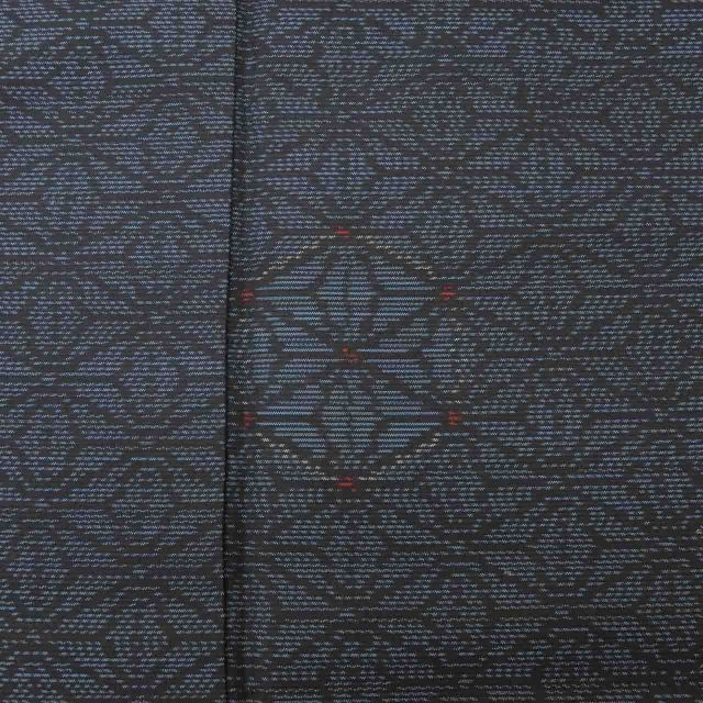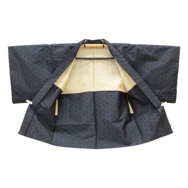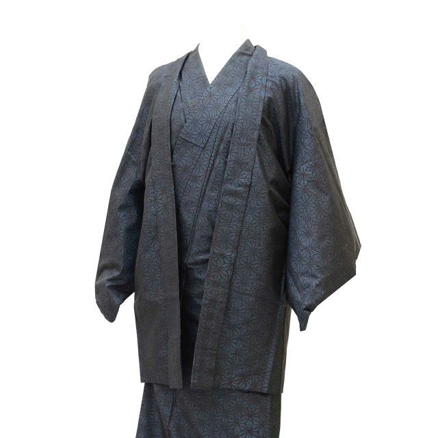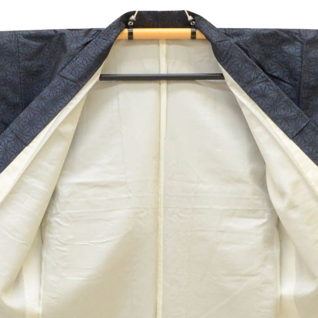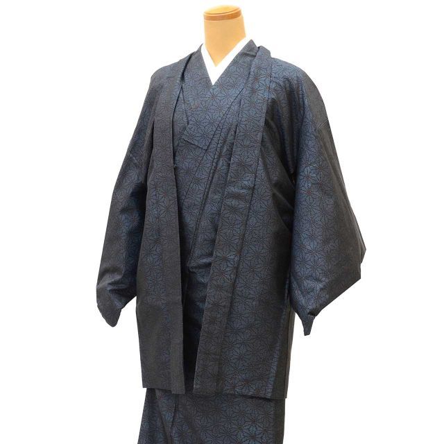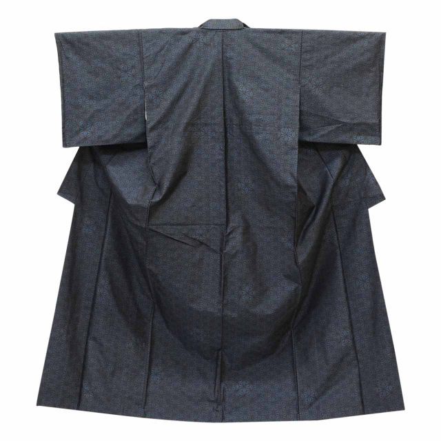 紺色に麻の葉文様が施された、粋なリサイクルのアンサンブルです。