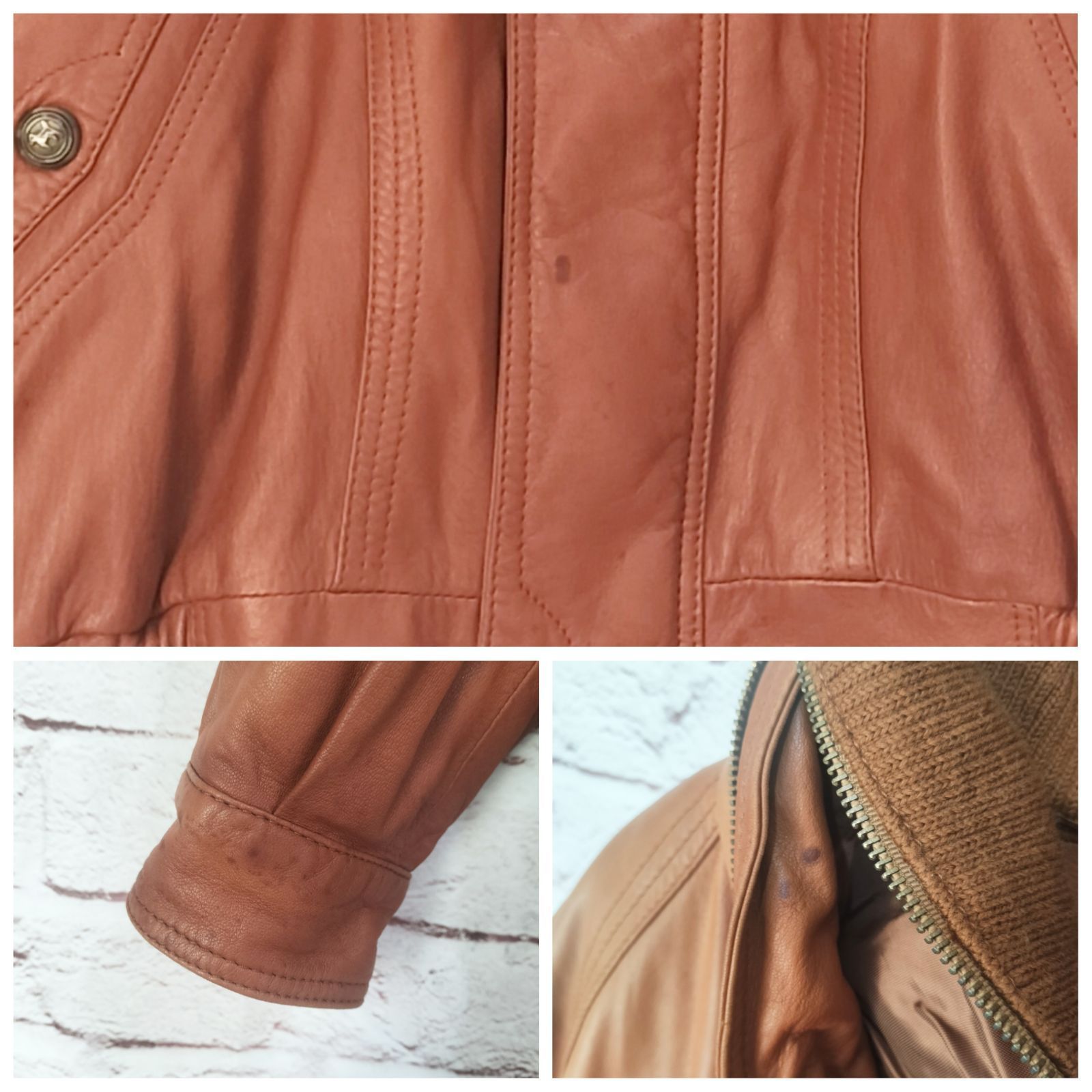 ◆ヴィンテージレザーならではのシミありますセンター下、右袖ボタン周り、襟リブ外した右内側(写真12枚目)他 小さな見落しの際はご容赦下さい。