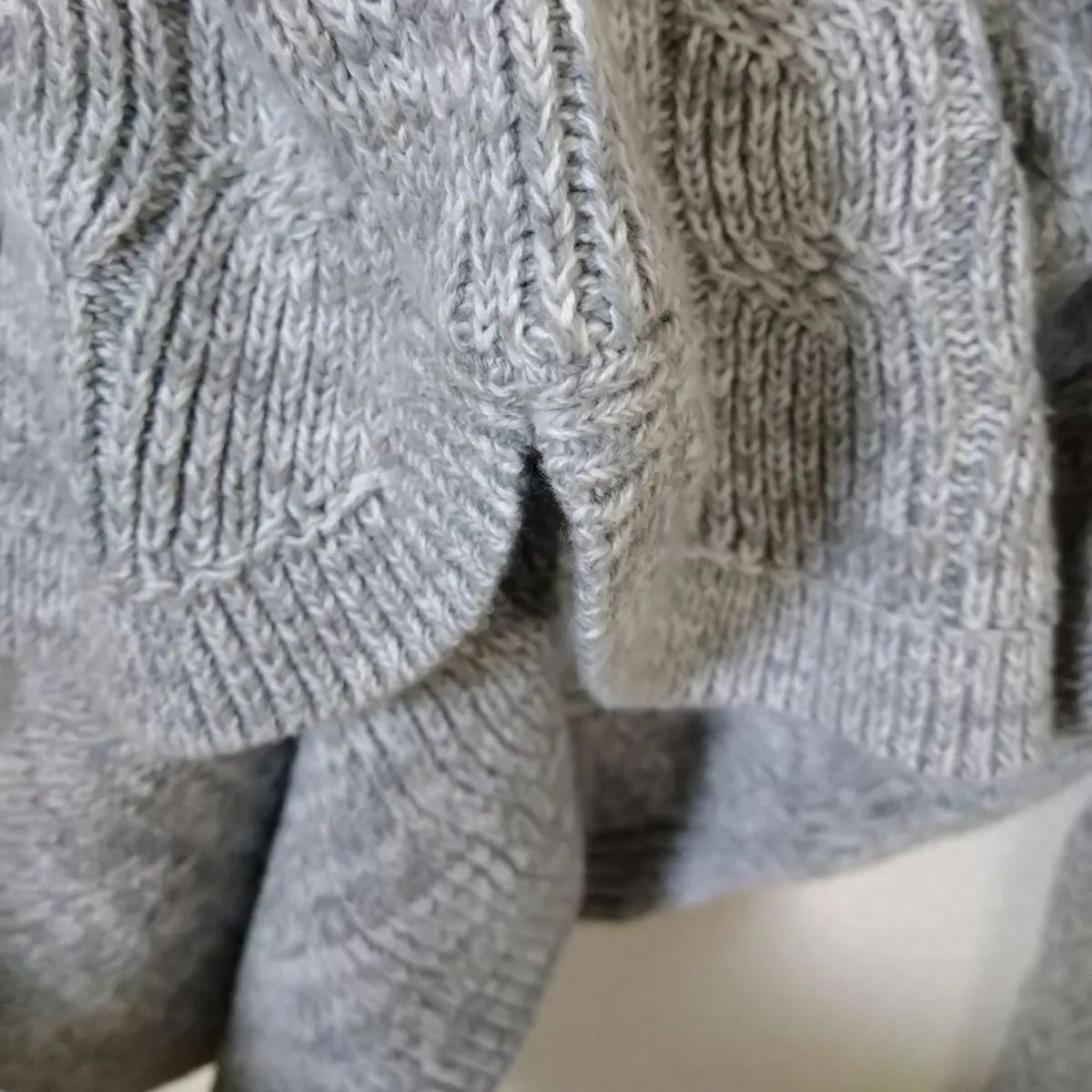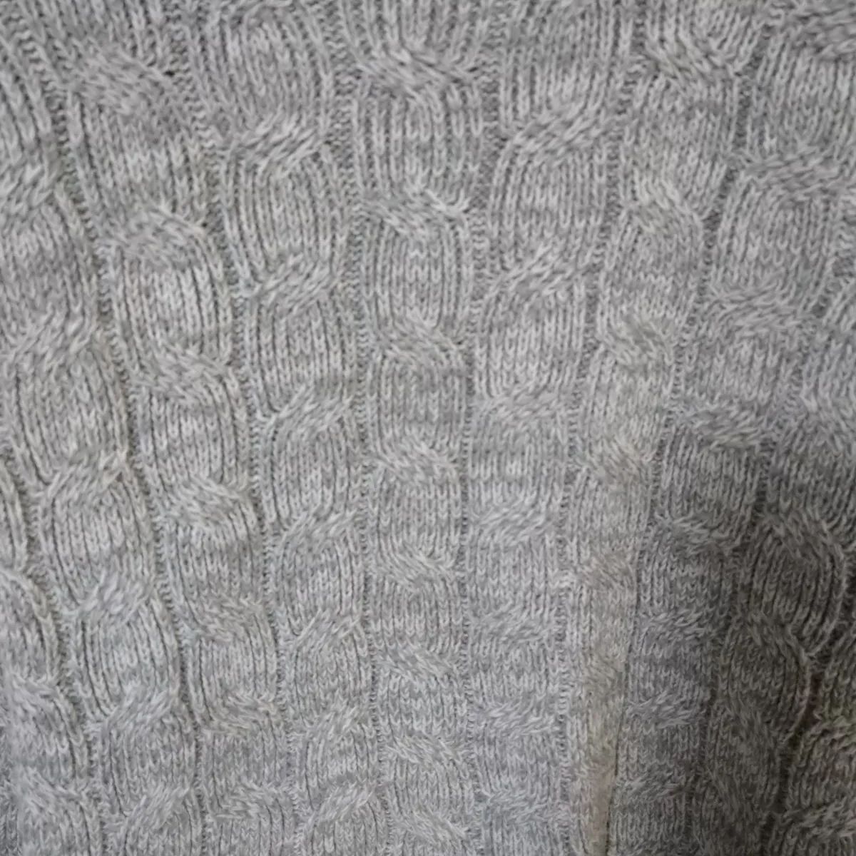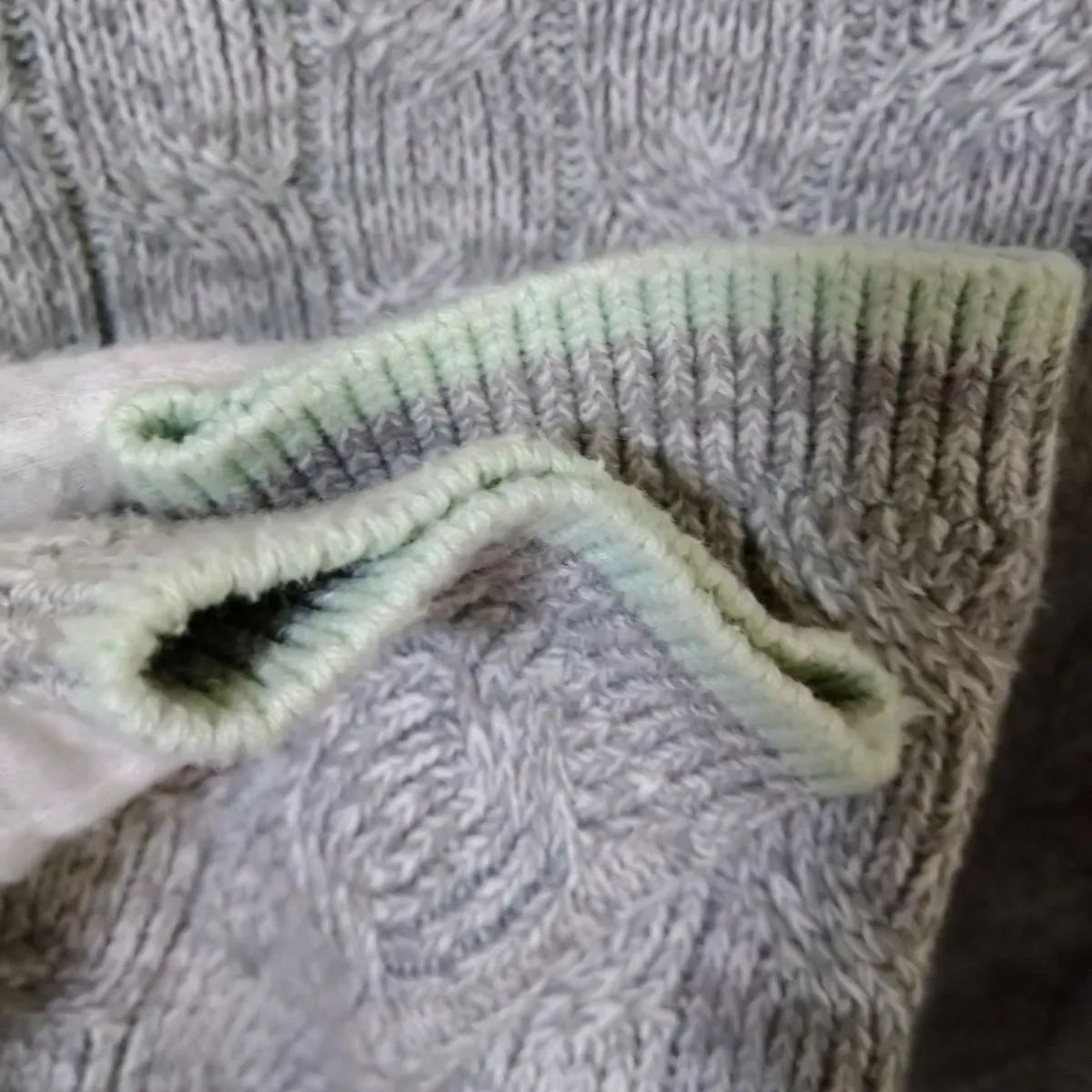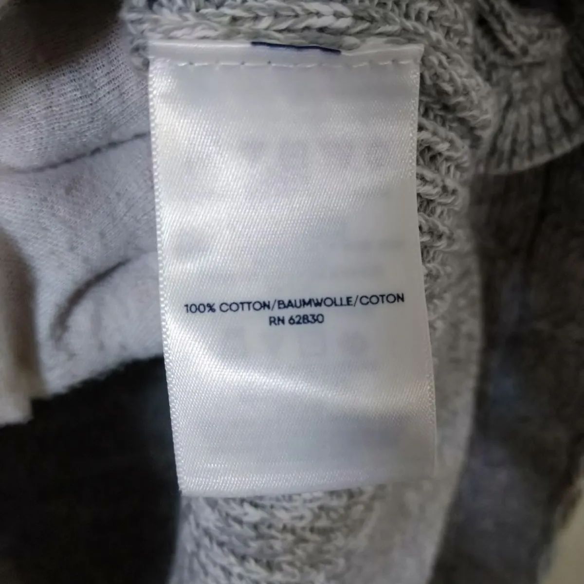 グレー色の単色カラーで、首、袖リブ部分薄い黄緑色が入った良いデザインの何にでも合わせやすい一品です。