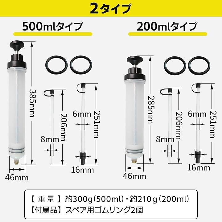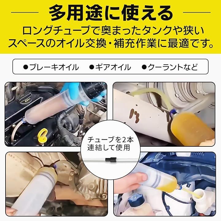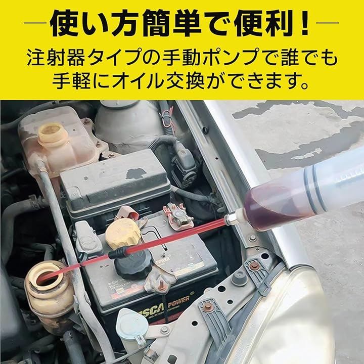 // 手を汚さず簡単操作 // 注射器タイプの手動ポンプで誰でも手軽にオイル交換ができる。