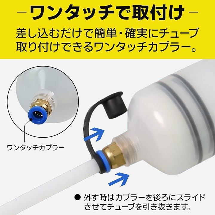 // 深部に届くロングチューブ // 長めのチューブで奥まったタンクや狭いスペースにも対応。
