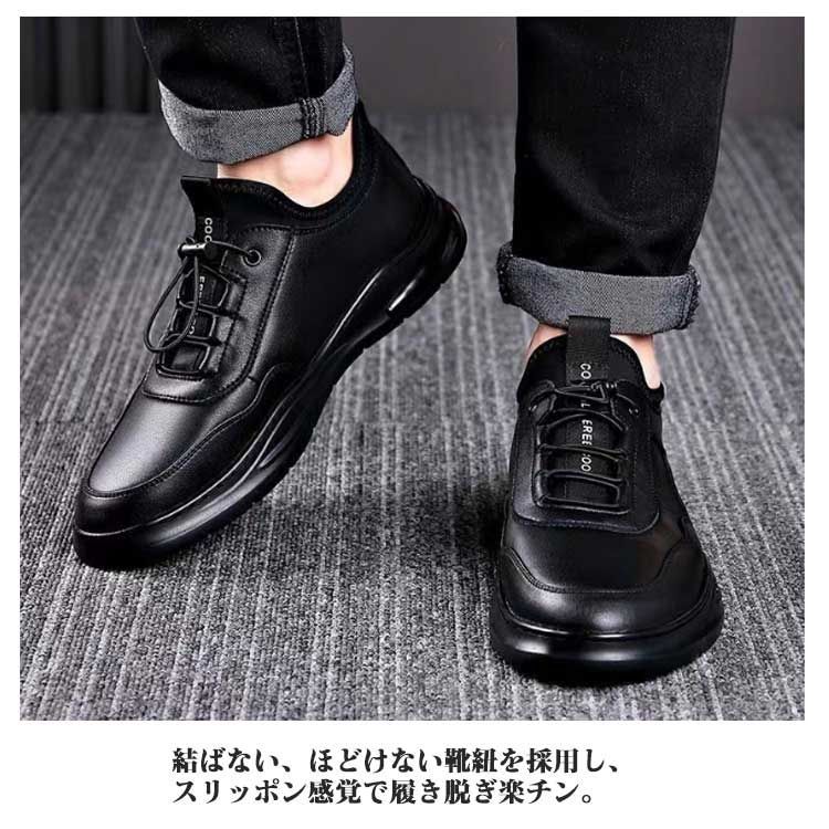 結ばない、ほどけない靴紐を採用し、スリッポン感覚で履き脱ぎ楽チン。