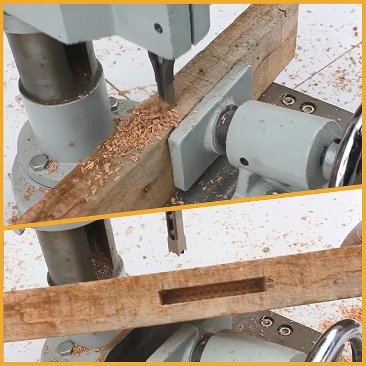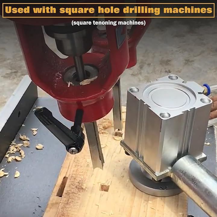 このドリル・ビット(スクエアテノン・マシンに装着)を使って角穴を開けると、ノミや他の手作業による方法よりも速く、角穴のサイズも正確です。