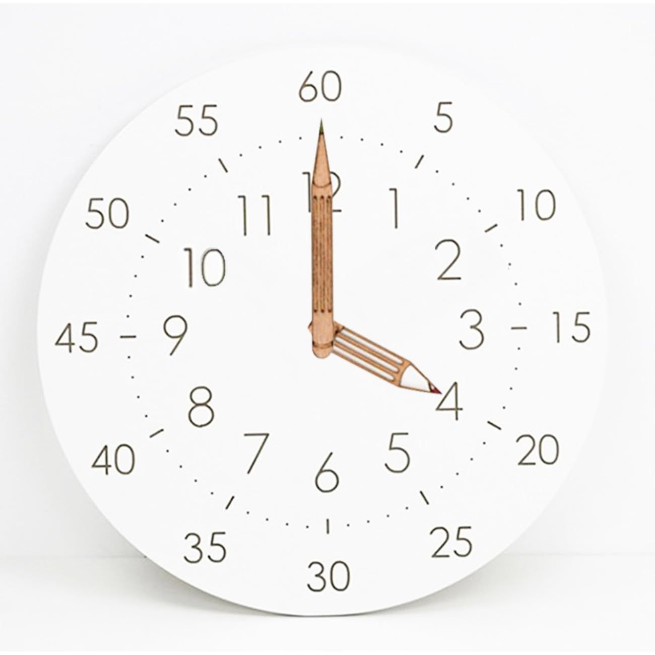 Color:ホワイト-電波 DUOGIO 壁掛け時計 直径30cm 電波時計 木製 アナログ 子供 知育時計 鉛筆形指針 アナログ 静音 連続秒針 見やすい 電池式 キッズルーム・リビング・教室・図書館など壁掛け ホワイト