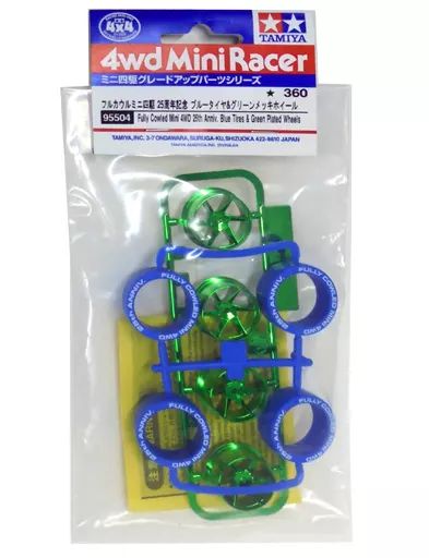 商品名:【中古】プラモデル フルカウルミニ四駆 25周年記念 ブルータイヤ&グリーンメッキホイール 「ミニ四駆グレードアップパーツシリーズ」 [95504]