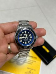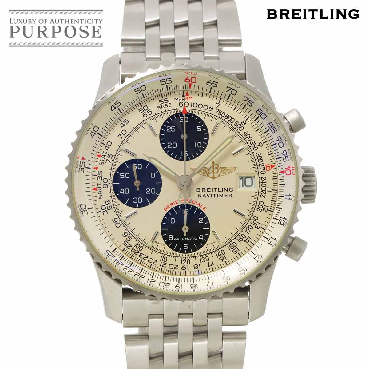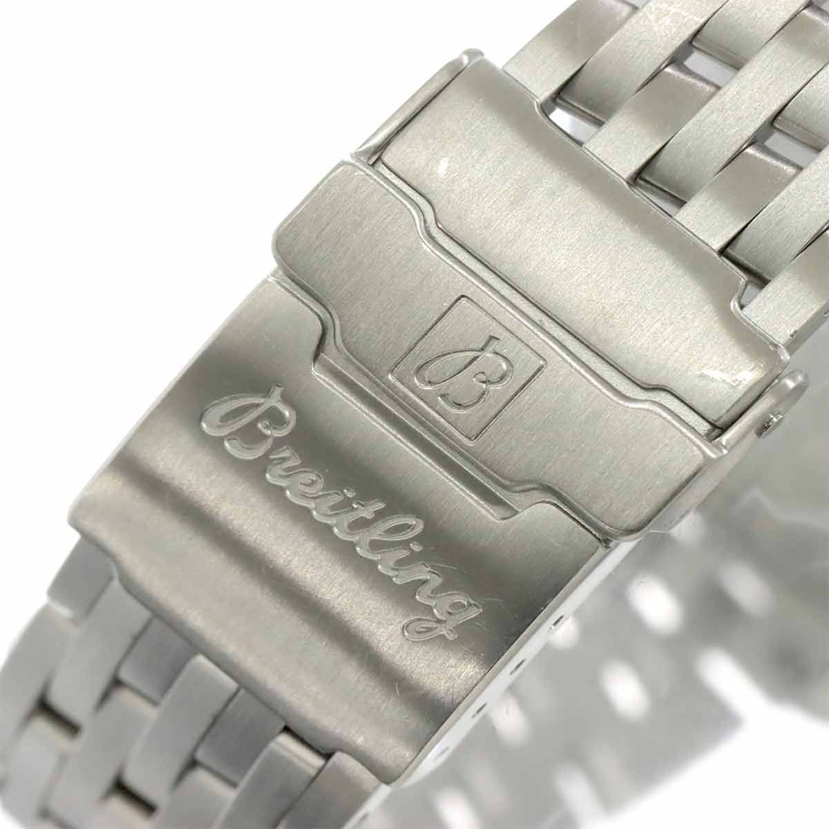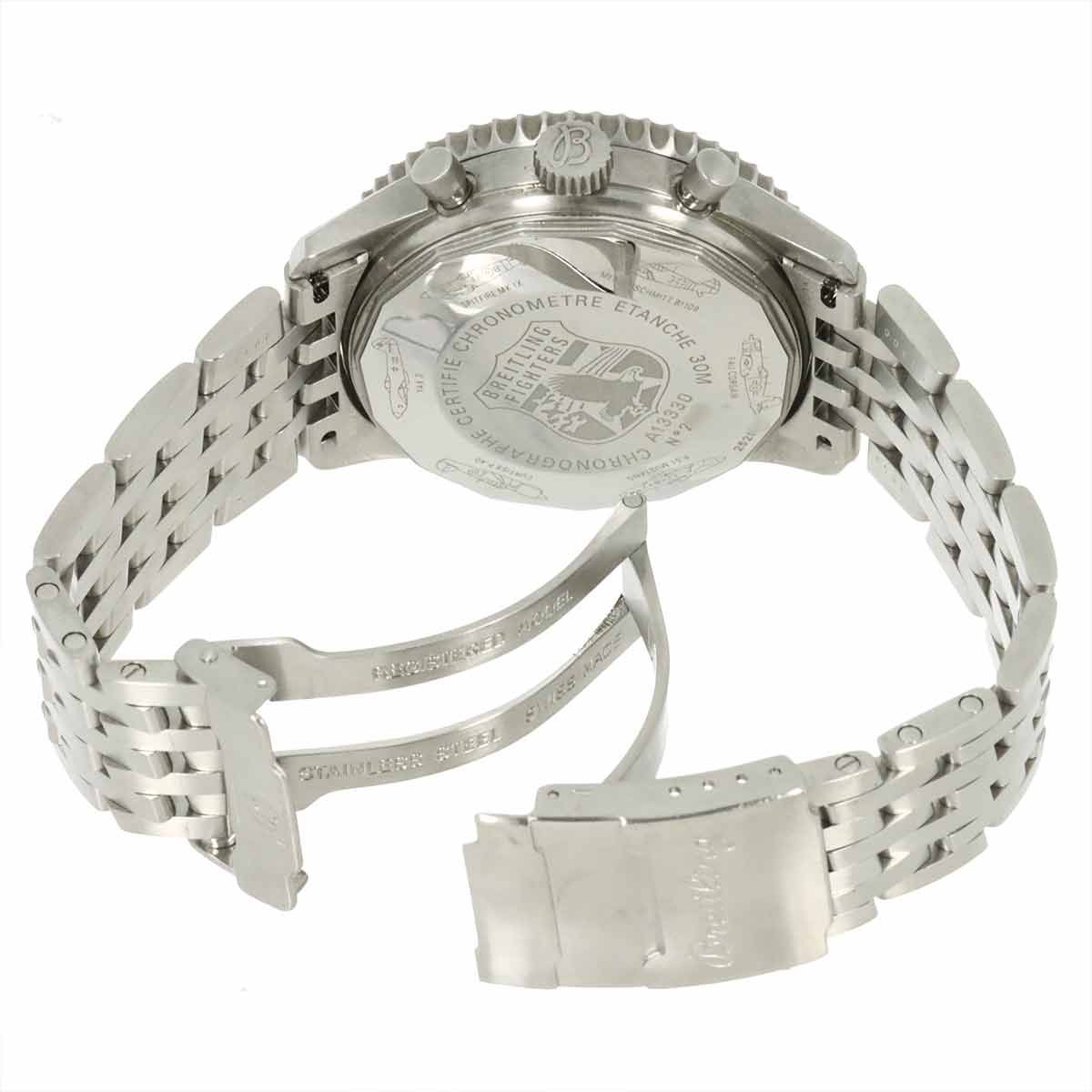 ブライトリングからエアロバティック・チーム「ブライトリング・ファイターズ」に敬意を表して誕生した『ナビタイマー ファイターズ』クロノグラフ腕時計です。裏蓋にはエンブレムと6機のシルエットを刻印!艶消しのケース、ブレスとシルバーのフェイスがクラシックなイメージの逸品です。