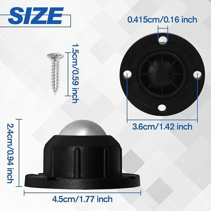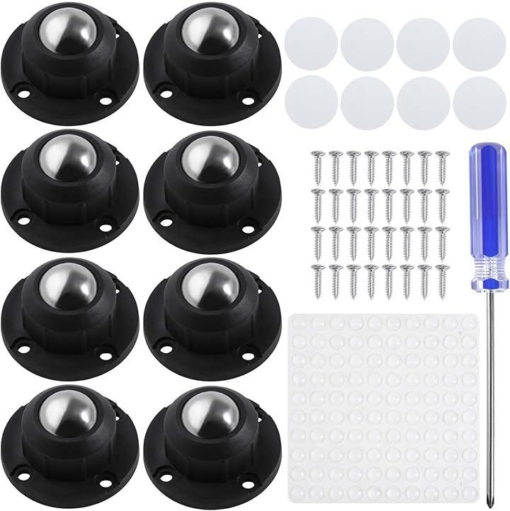 「セット内容」45mm自在キャスター8個、粘着パッド8個、ネジ32個、ドライバー1本、防衝突シリコンパッド100個。