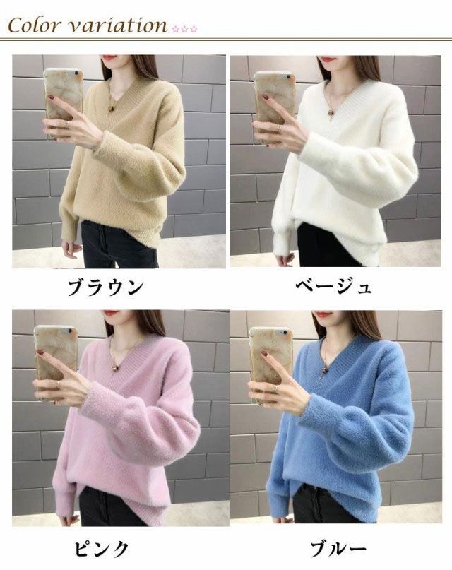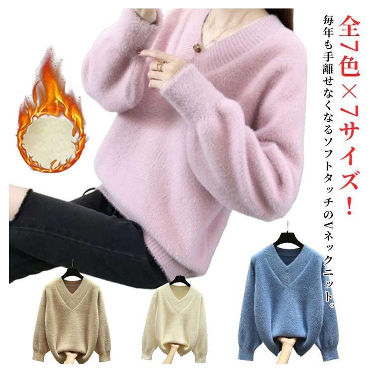 全7色×7サイズ!毎年も手離せなくなるソフトタッチのVネックニット。