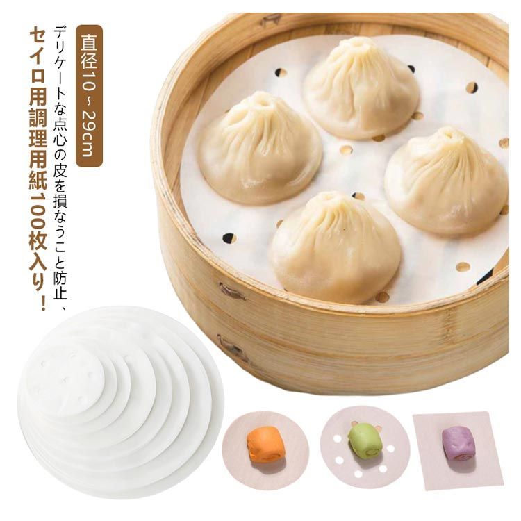 デリケートな点心の皮を損なうこと防止、セイロ用調理用紙100枚入り!