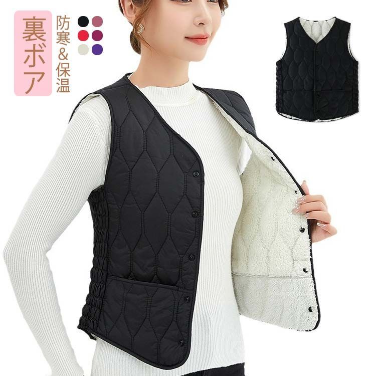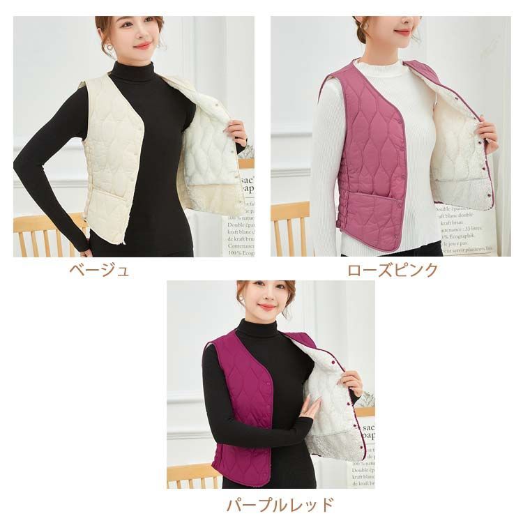 送料無料 インナーベスト レディース 中綿ベスト ボアベスト 裏起毛 ライトベスト ベストアウター 保温 軽量 秋冬 キルティング 前開き 防寒ベスト 防風 インナーダウン おしゃれ カジュアルトップ#goudoudou3737