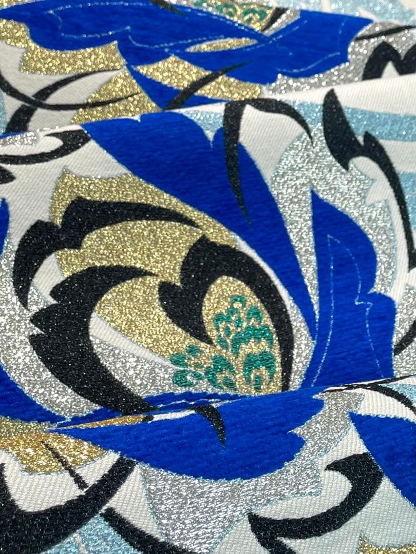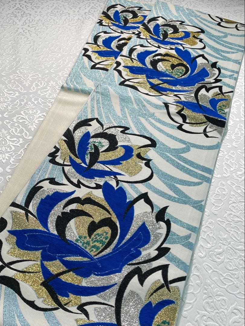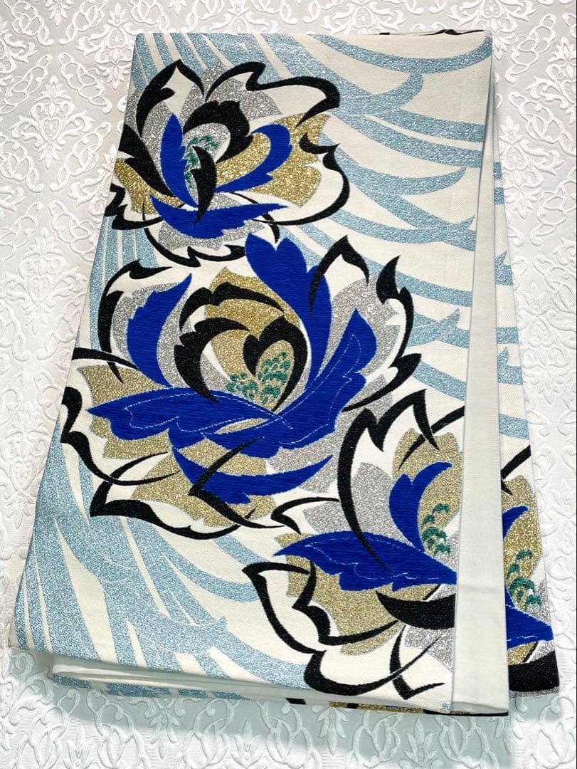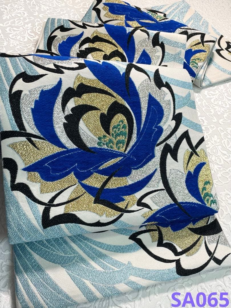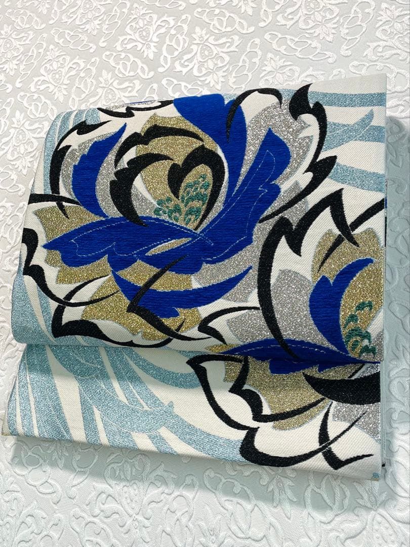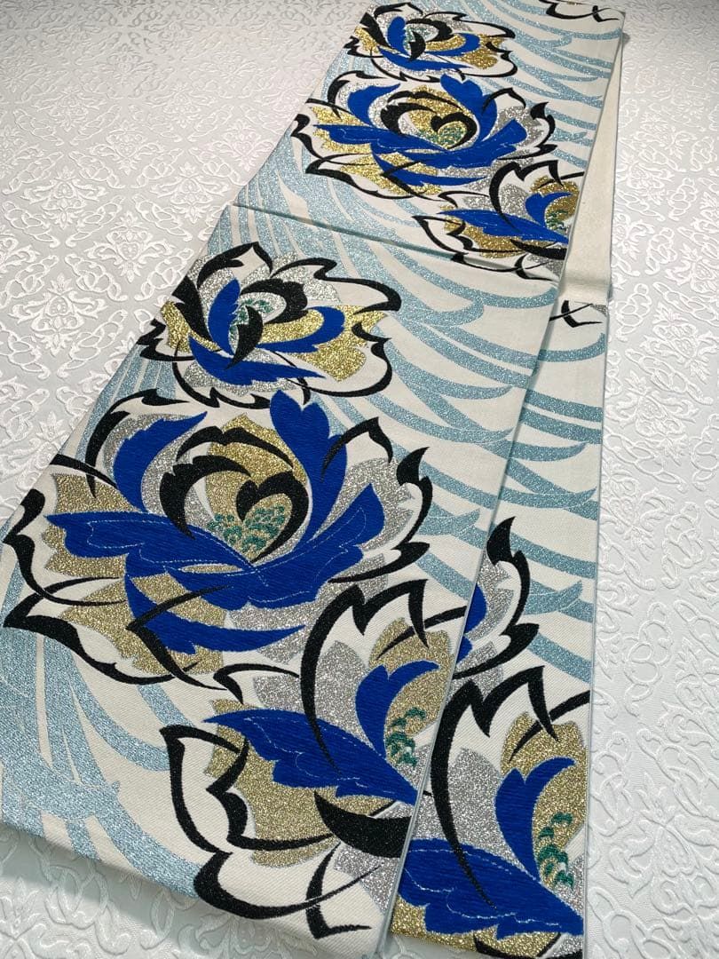 袋帯 振袖用 薔薇 モダン ラメ糸 金糸 銀糸 正絹 六通 SA065
