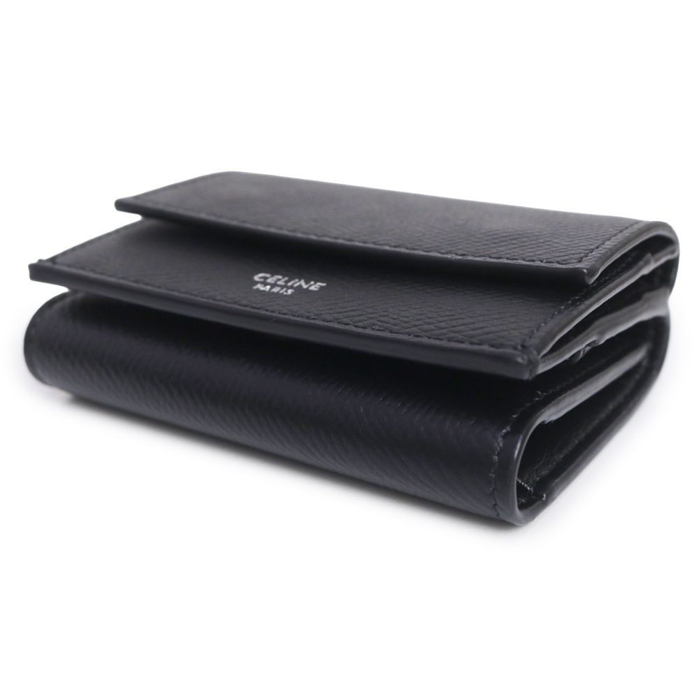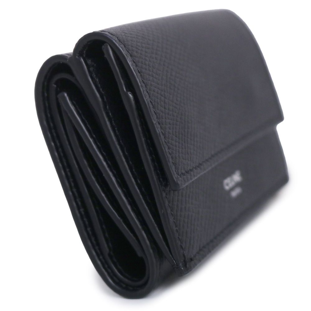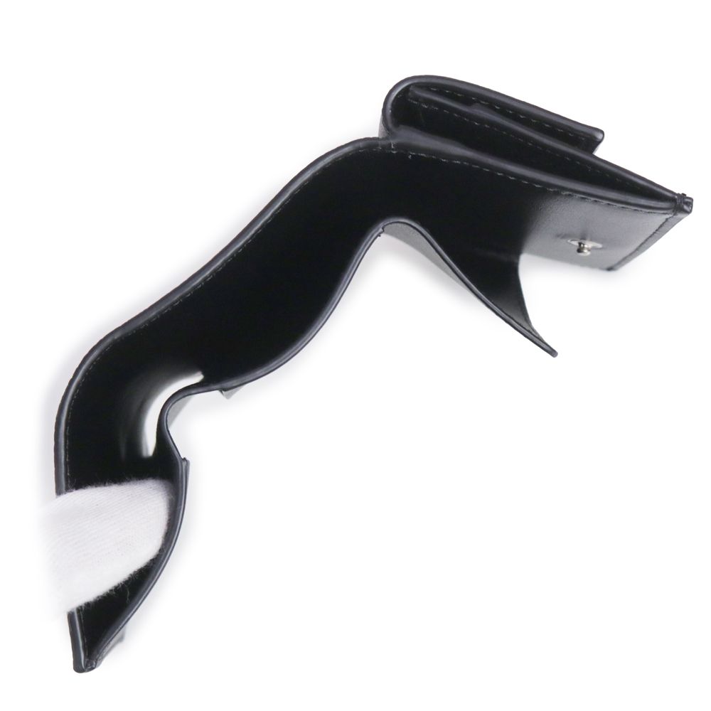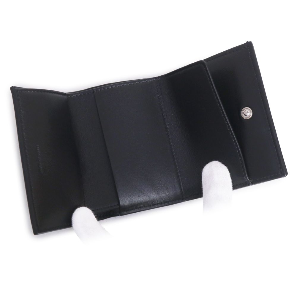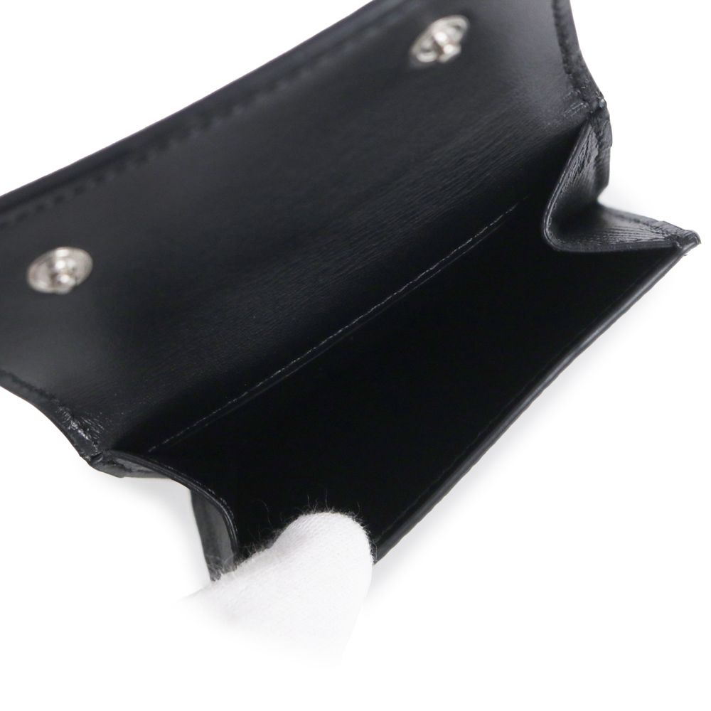 【商品紹介】傷のつきにくいレザーに施された箔押しのブランドロゴが際立つ三つ折り財布です。コンパクトなサイズ感ですが小銭入れも完備しており、機能性にも優れています。