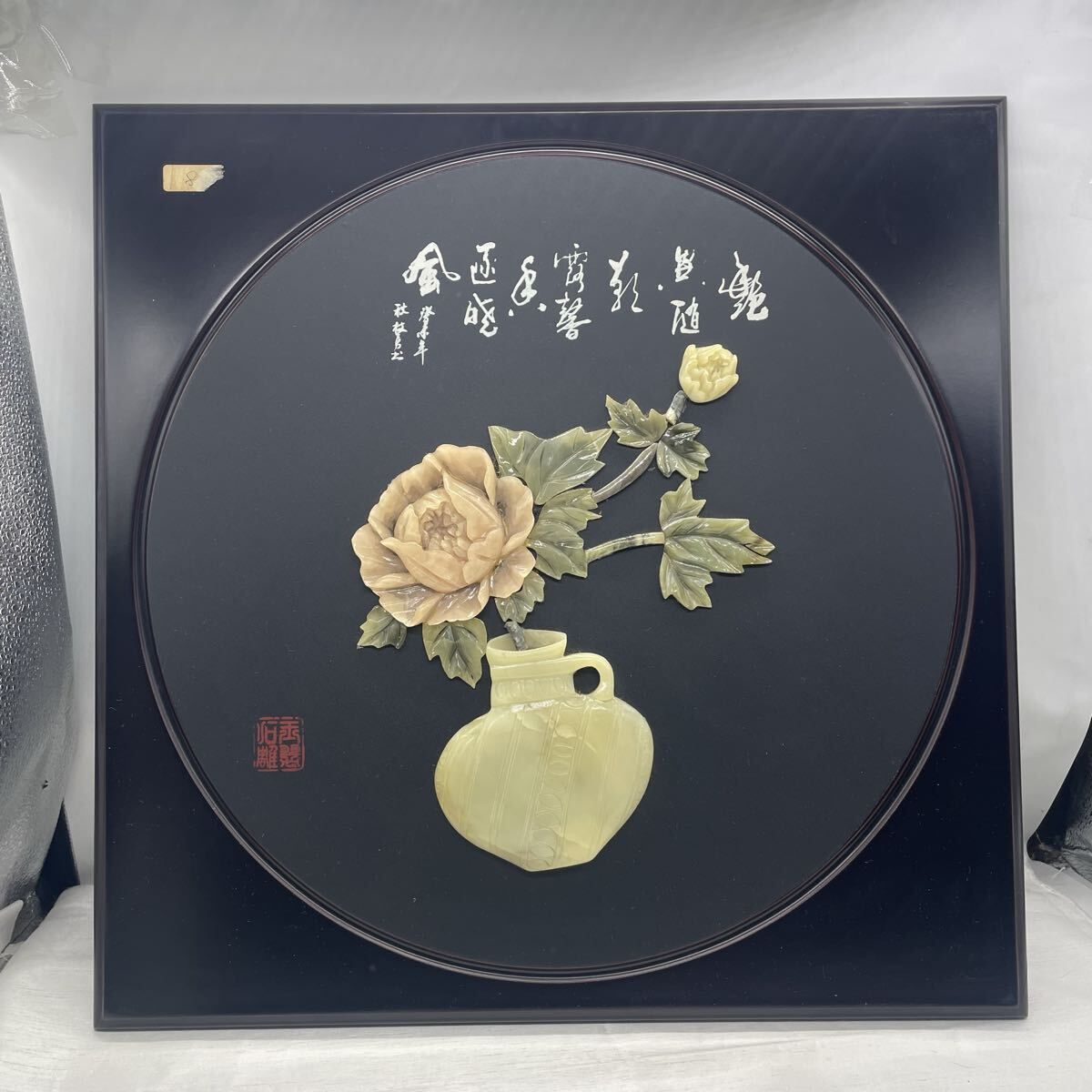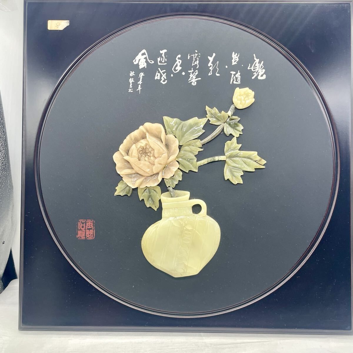 精巧に彫られた翡翠装飾が魅力の壁掛けパネルです。
