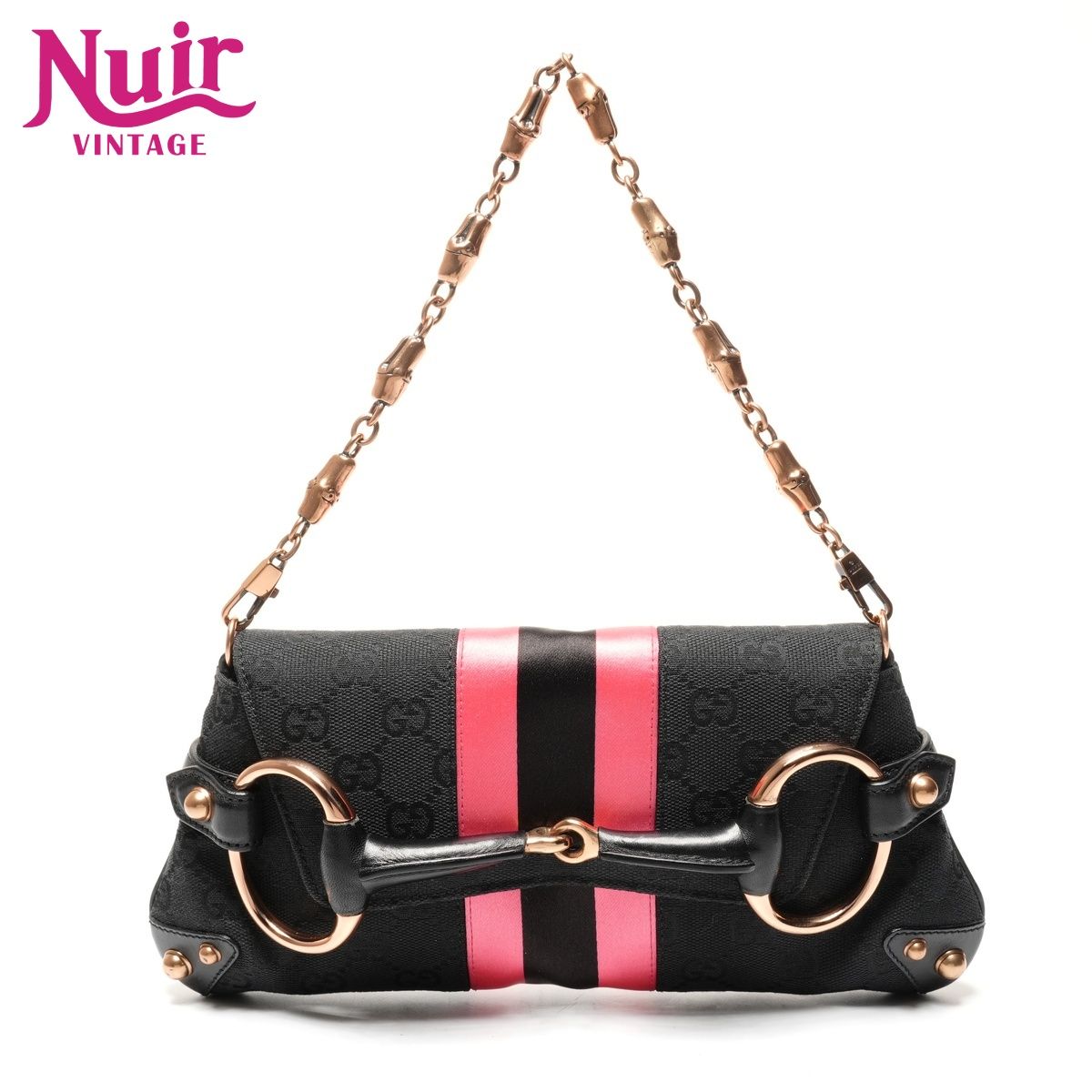 GUCCI グッチ ショルダーバッグ ホースビット GGキャンバス ピンク ミニ ワンショルダー【中古】