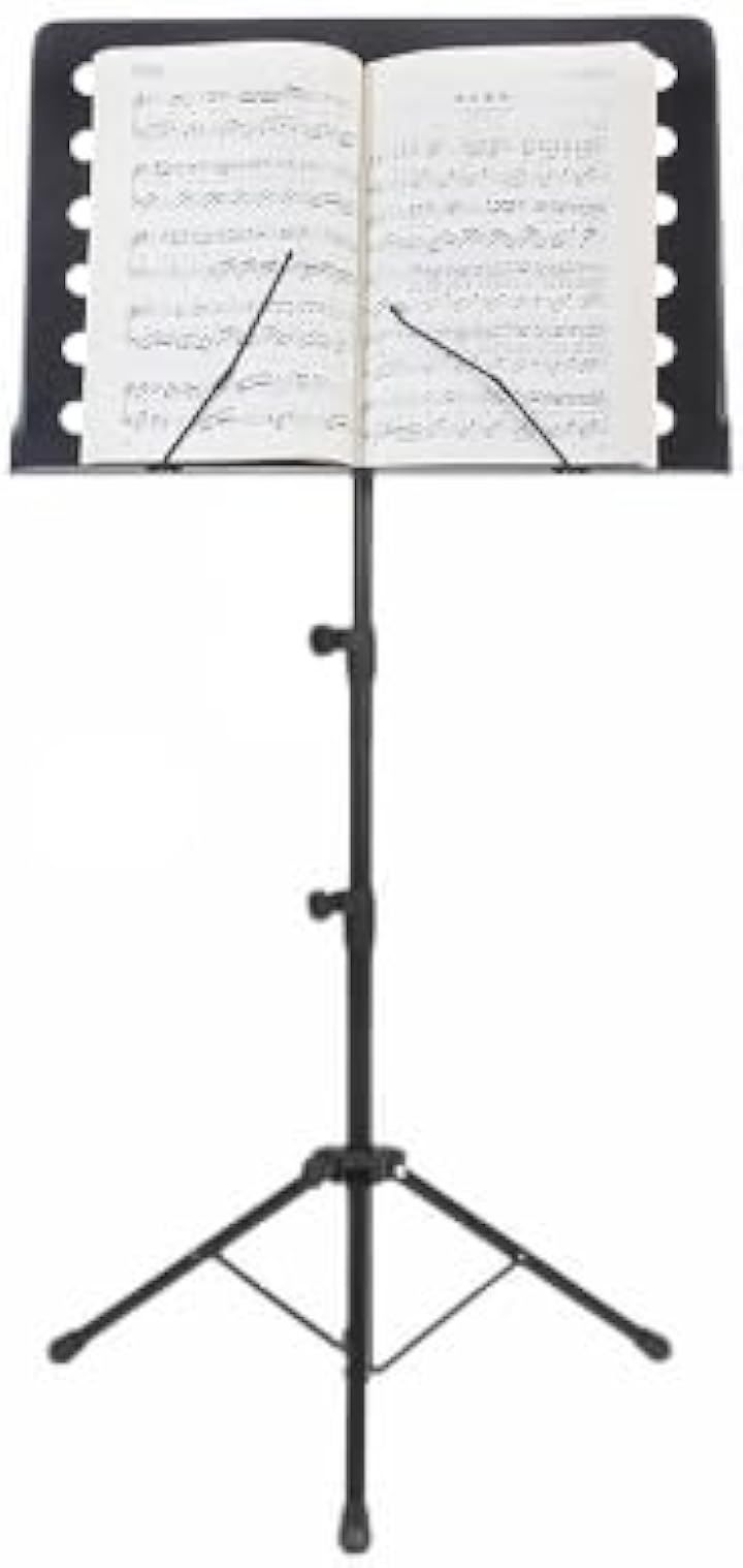 このミュージックスタンドは、高さ調整機能付きで、個々のニーズに合わせられます。