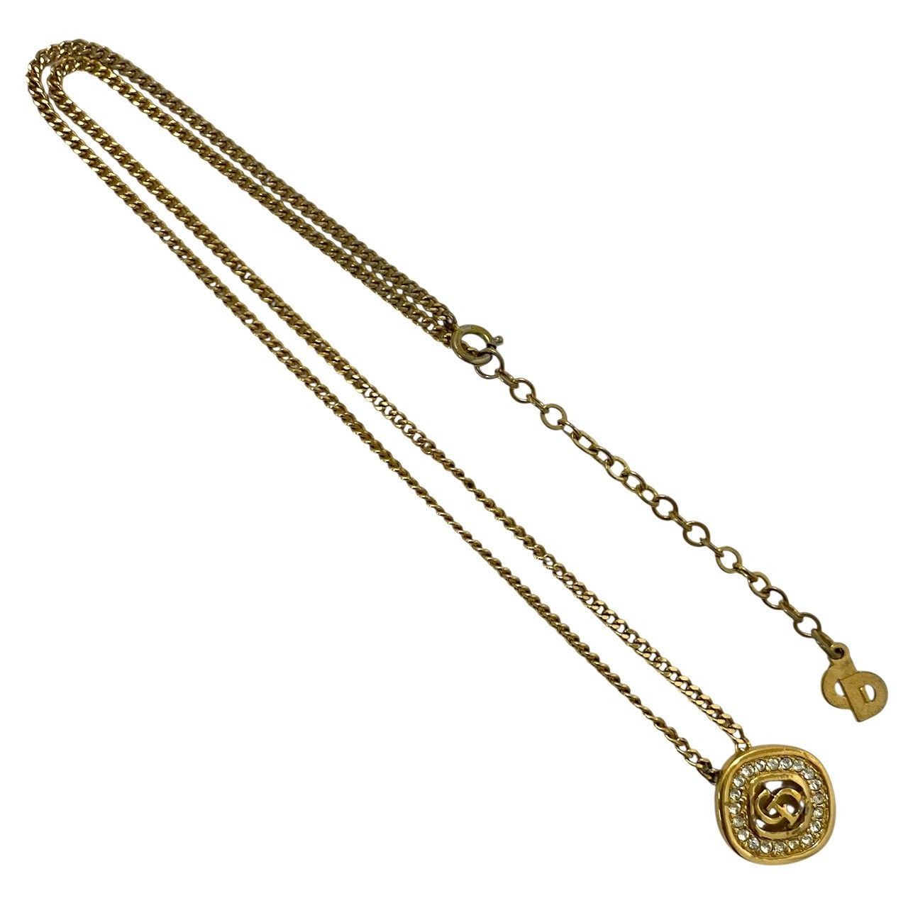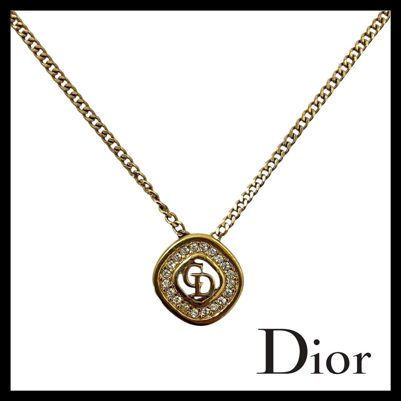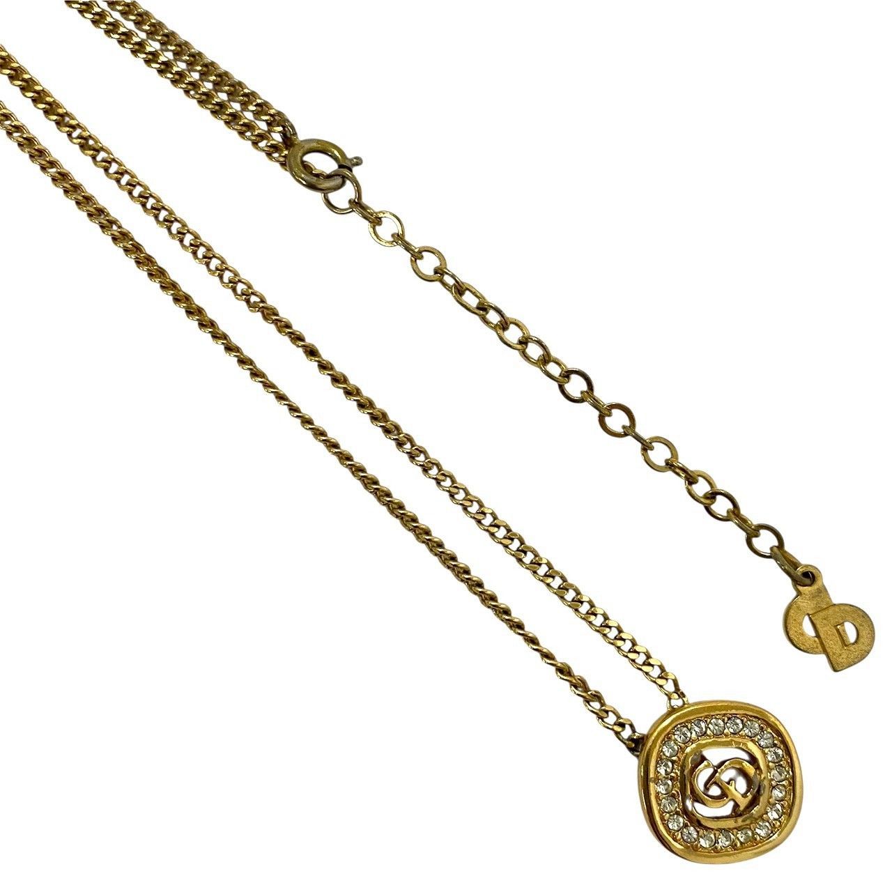 【Dior】CDロゴ ネックレス ゴールド/金カラー ラインストーン ひし形 ペンダント ヴィンテージ Christian Dior/クリスチャンディオール (SER-6161①)