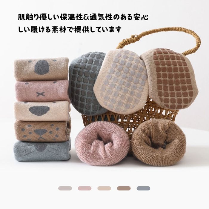 キッズソックス 滑り止め 冬 秋冬 温かい 保温 あったか 保育園 幼稚園 子供用靴下 キッズ ソックス 5足セット 綿 コットン アニマル 動物 くつ下 男の子 女の子 子供ソックス 転倒防止キッズ靴下 ショート丈 冬用 秋 csxz22