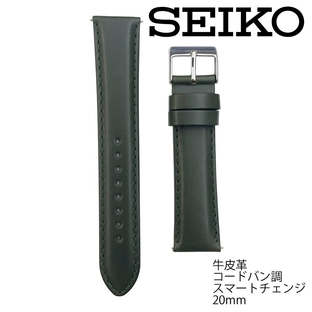 RS12C20GN 20mm グリーン セイコー スマートチェンジ カーフ 牛皮革 コードバン調 切身 小甲丸タイプ 時計ベルト バンド 新品未使用正規品