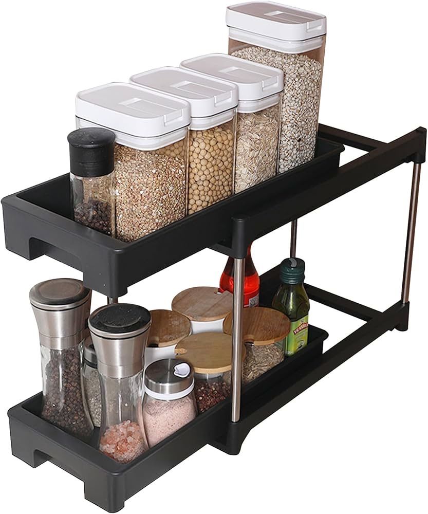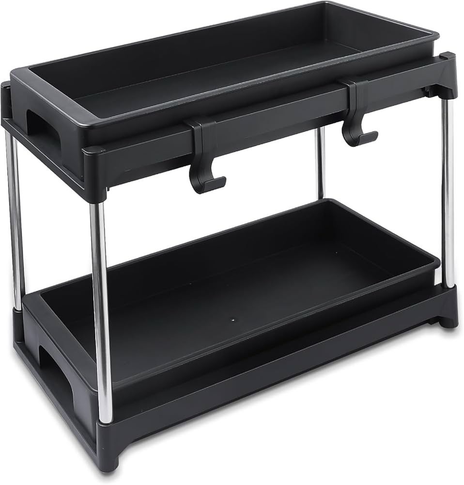 【大容量】:キッチンの調味料をすべて収納できる2段式てのデザインは、大容量で狭いスペースをうまく利用できます。高品質の材質を使用しています。衛生的で早く乾燥でき、長時間使用できます。2つのフックは、いくつかの小さなものを掛けることができます。