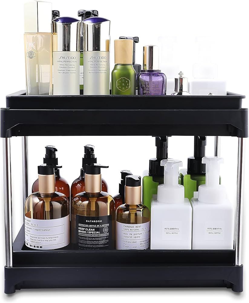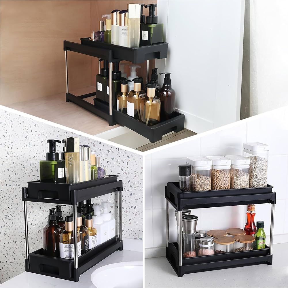 【多機能】:ご底板は穴付きで通気性がよく、掃除が不便なトラブルを簡単に解消でき、湿布だけでベースの汚れやホコリを拭き取ることができます。シンクの下だけでなく、調味料や洗面台の上、オフィスの机の上の雑貨や化粧品なども置くことができます。さまざまな場面で活躍しています。