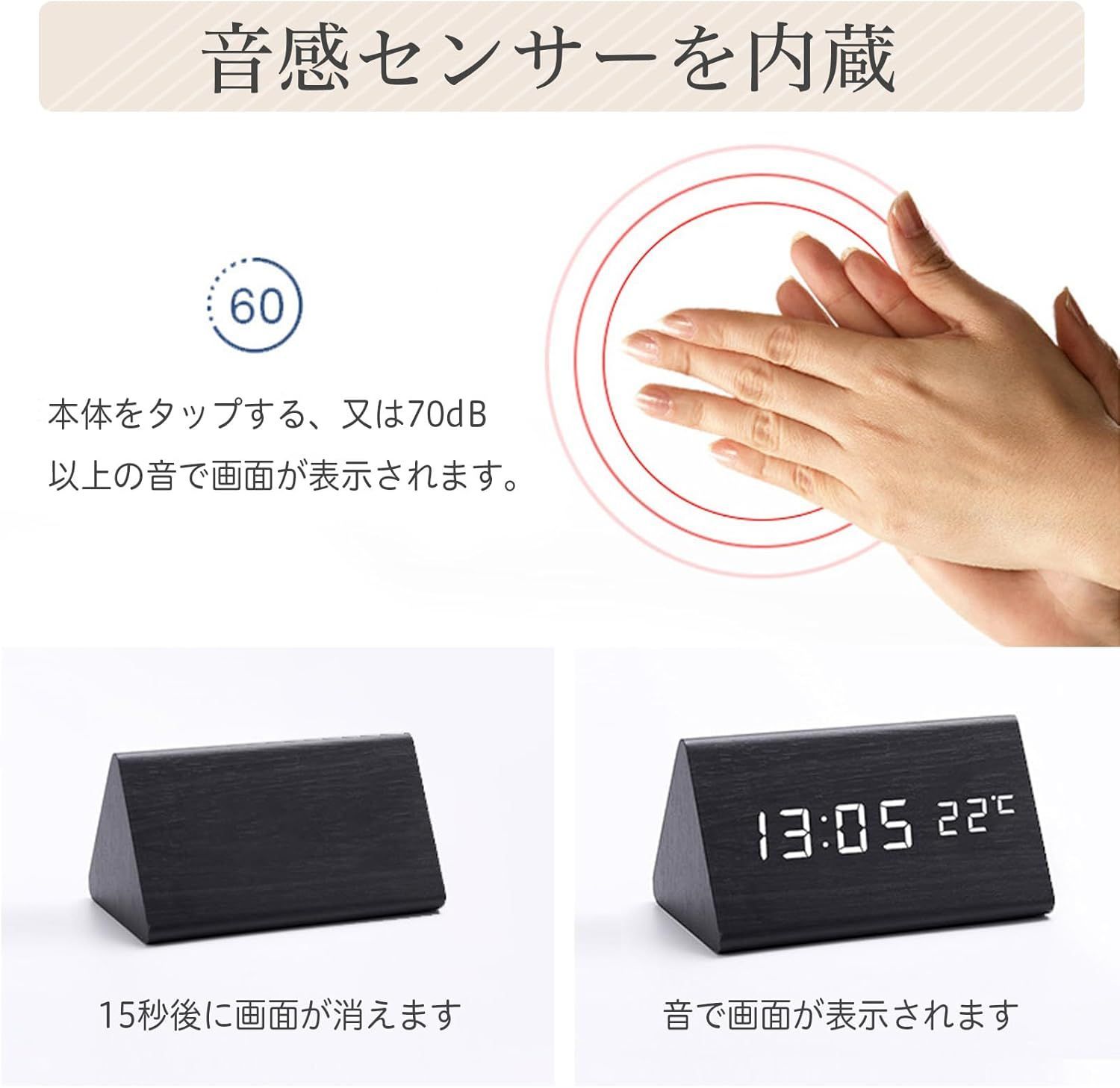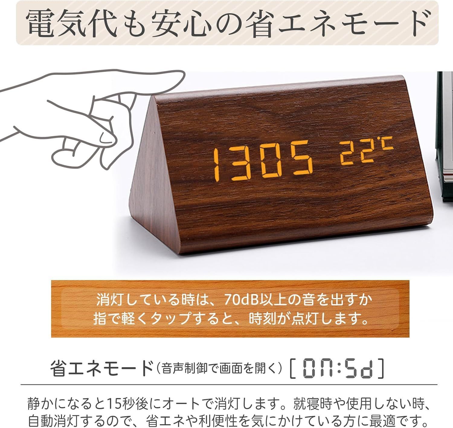 ✅【音声検知と省エネ設計】音声検知と常時点灯モードの切り替えが可能です。 音声検知モードでは、70db以上の音や振動を感知したり、時計を軽くで叩くと、自動的にオンになります。 静かになると約15秒後に消灯します。この機能により省エネを実現しています。