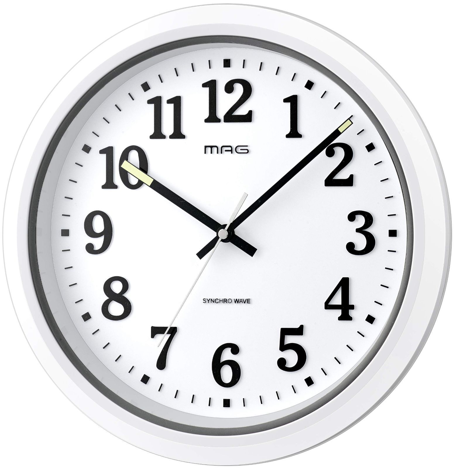 Color:ホワイト MAG(マグ) 掛け時計 電波時計 防水 防塵 アナログ ナヤ IP67 夜間秒針停止機能付き 立体文字 プラスチック風防 ホワイト W-734WH-Z