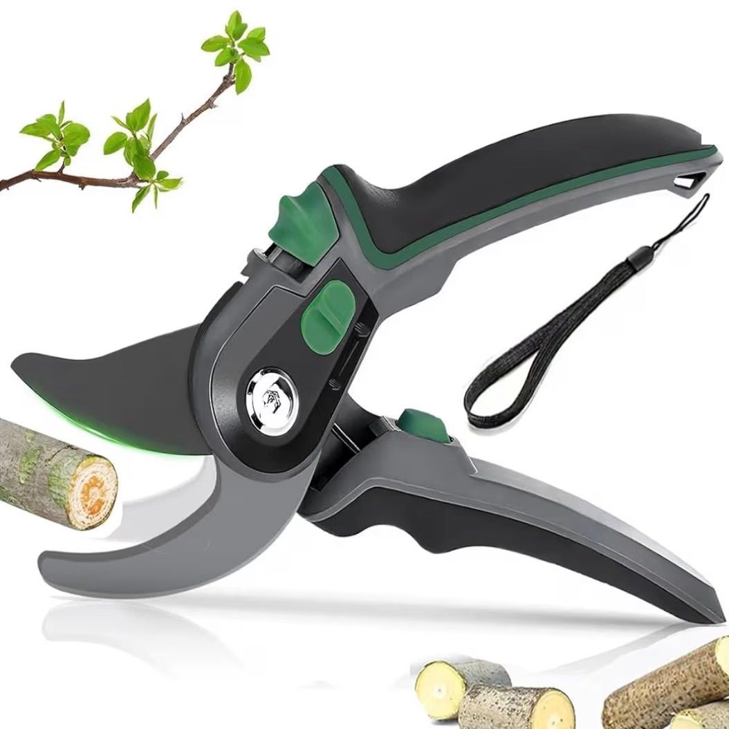 【開きの幅を調節可能】この植木鋏は剪断力調整装置が搭載されており、剪定ニーズに応じて刃の開きを自由に調整でき、異なる太さの枝も簡単に切ることができます。小枝から広葉樹の枝まであらゆるものを扱うことができます。