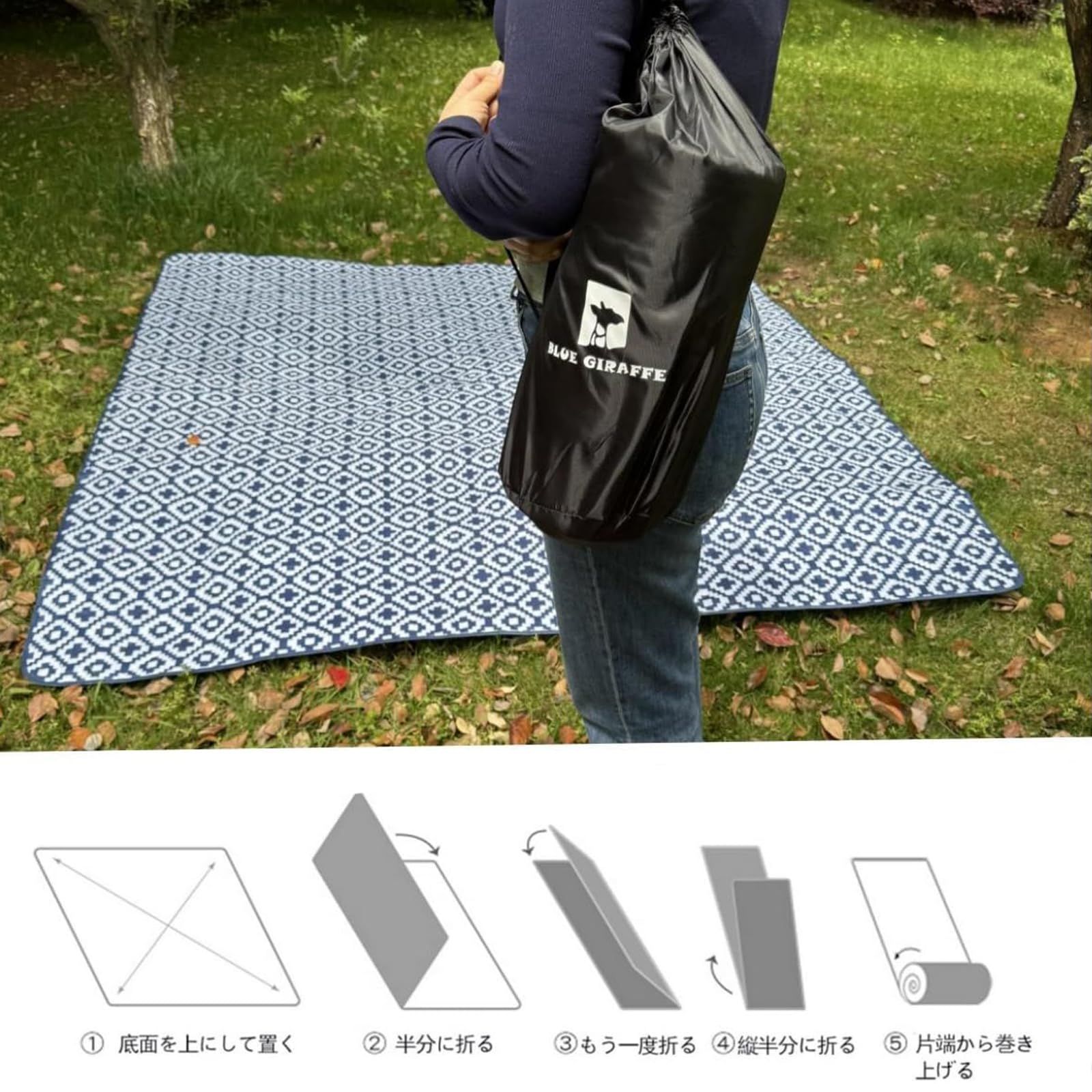 Blue Giraffeレジャーシート厚手 4層構造 大判 200X200 ピクニックシート 軽量 防水加工 収納袋付く 洗える折り畳みやすい コンパクト収納
