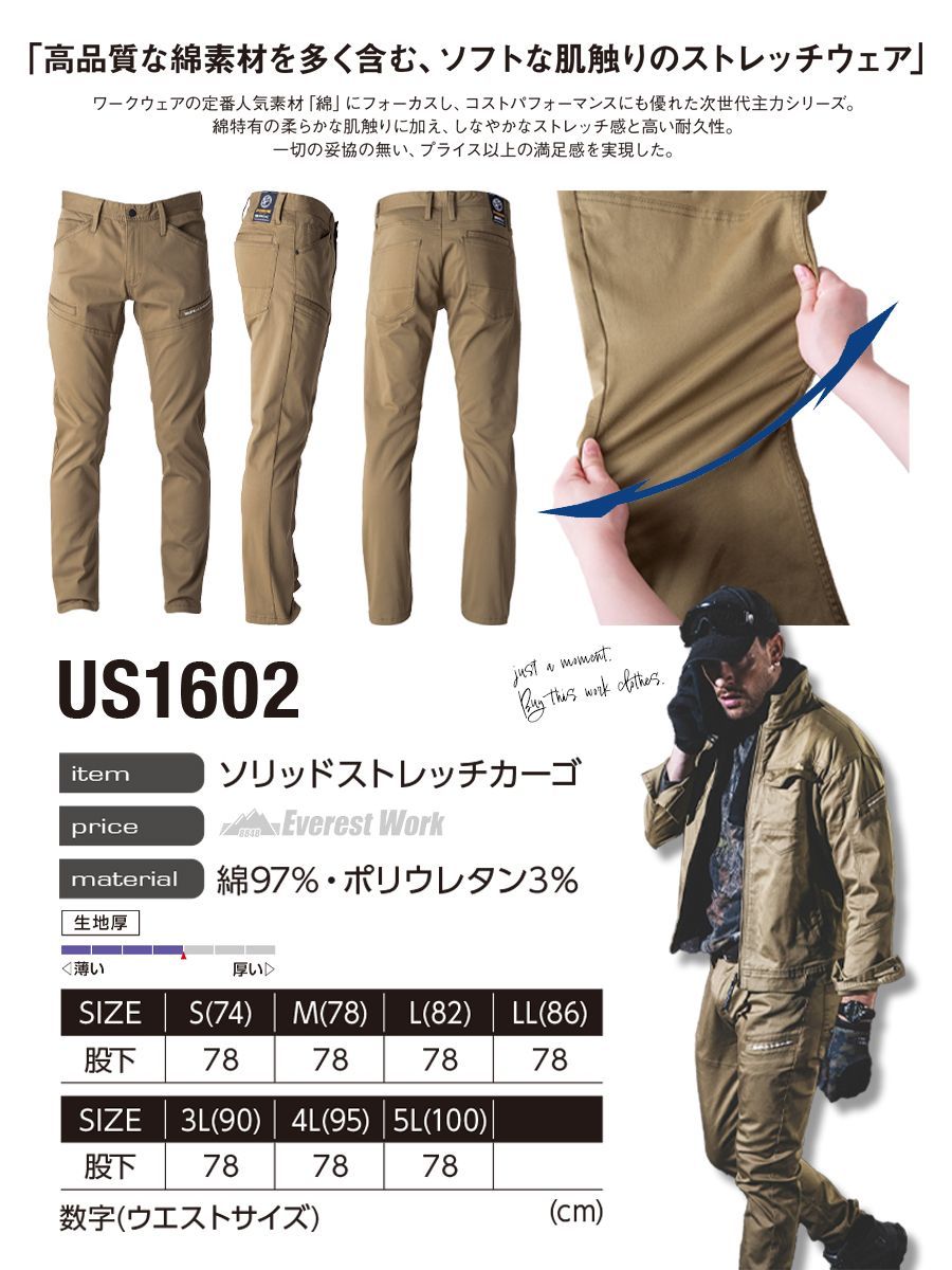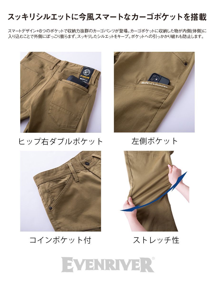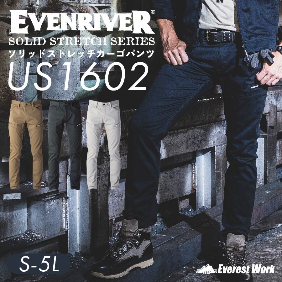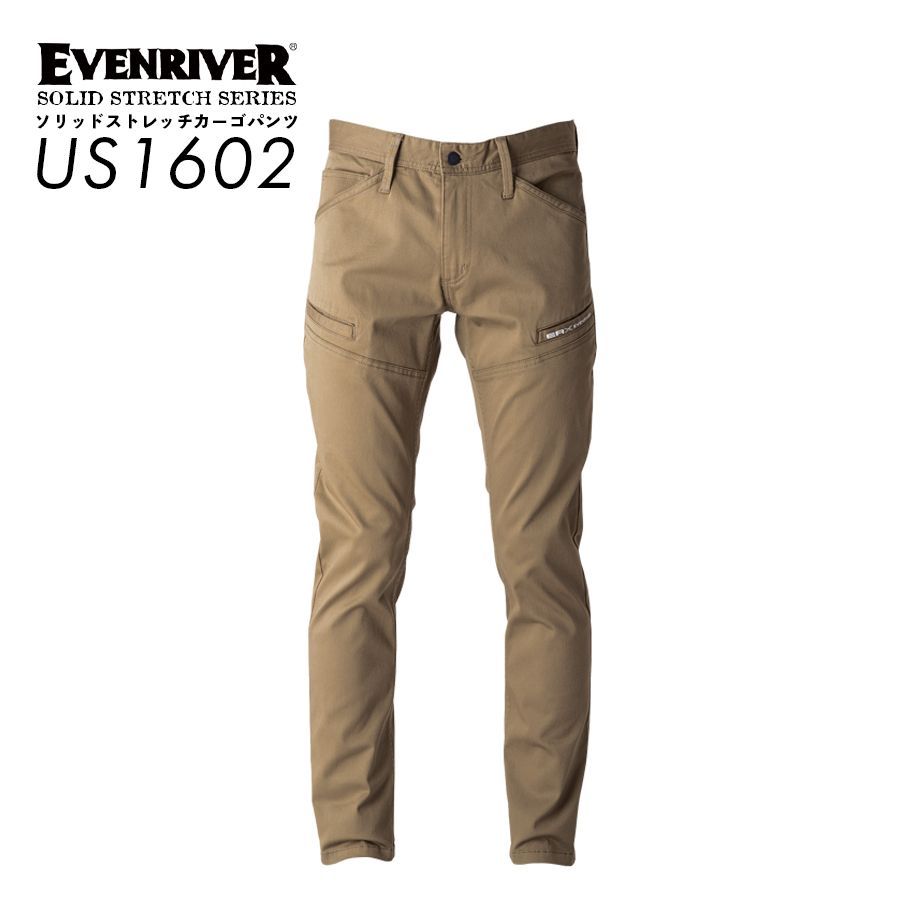 ソリッドストレッチカーゴ イーブンリバー US1602 カーキ カーゴパンツ メンズ 綿 ストレッチ 作業ズボン 作業着 作業服 EVENRIVER 綿混 やや厚手 全4色 『S~5L』