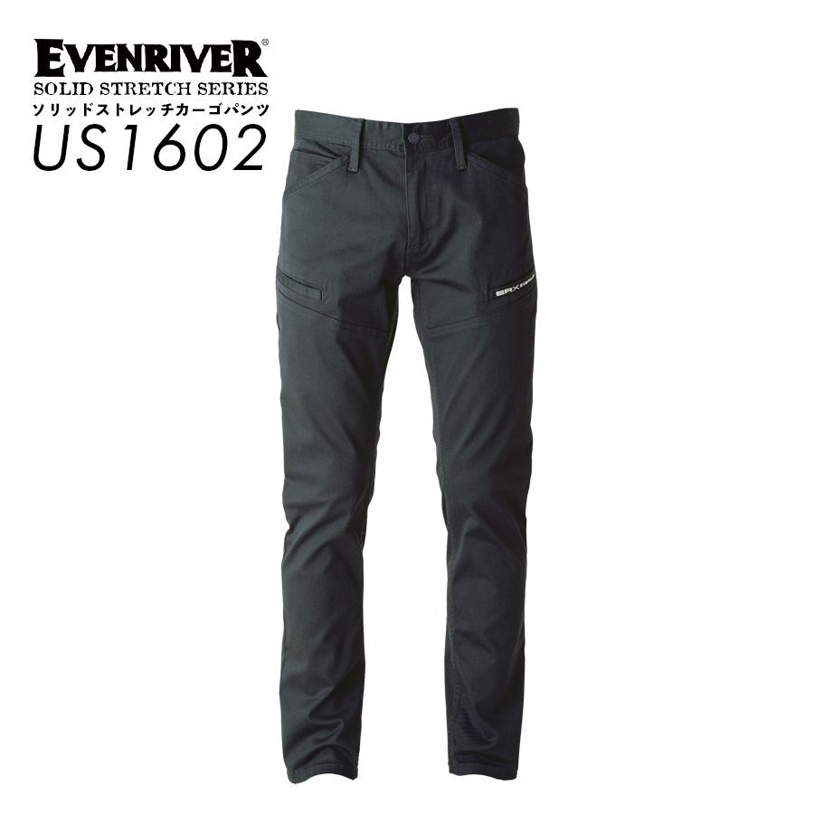ソリッドストレッチカーゴ イーブンリバー US1602 ライトブラック カーゴパンツ メンズ 綿 ストレッチ 作業ズボン 作業着 作業服 EVENRIVER 綿混 やや厚手 全4色 『S~5L』