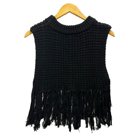 【商品名】スタイルミキサー STYLEMIXER ニットベスト クルーネック フリンジ ショート丈 F 黒 ブラック