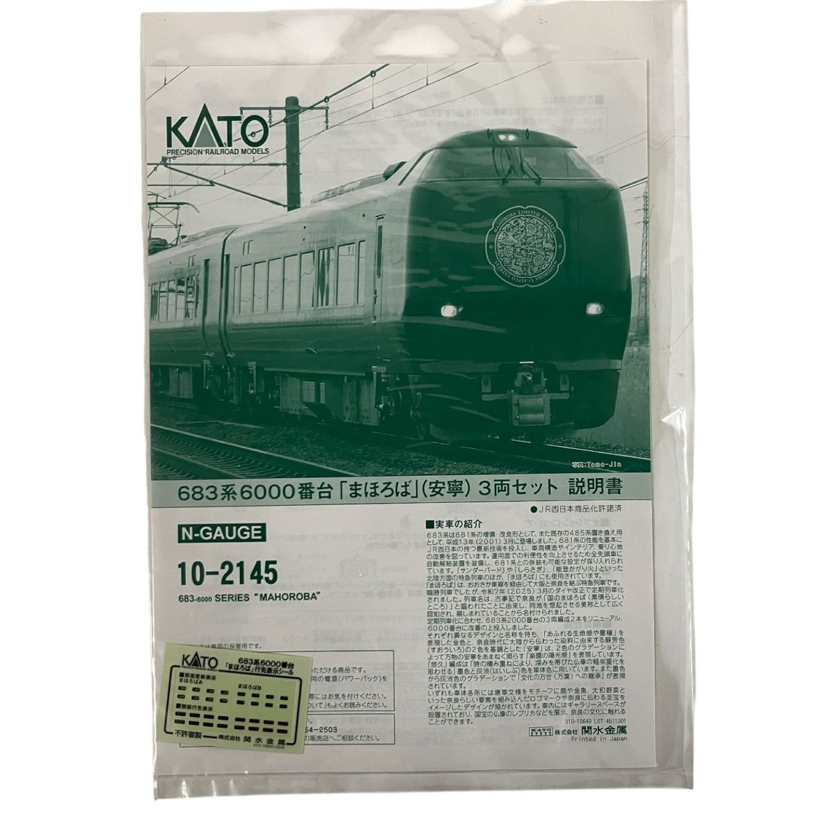 こちらは「KATO 10-2145 683系 683系6000番台「まほろば」(安寧) 3両セット 鉄道模型 Nゲージ 中古 美品 」でございます。