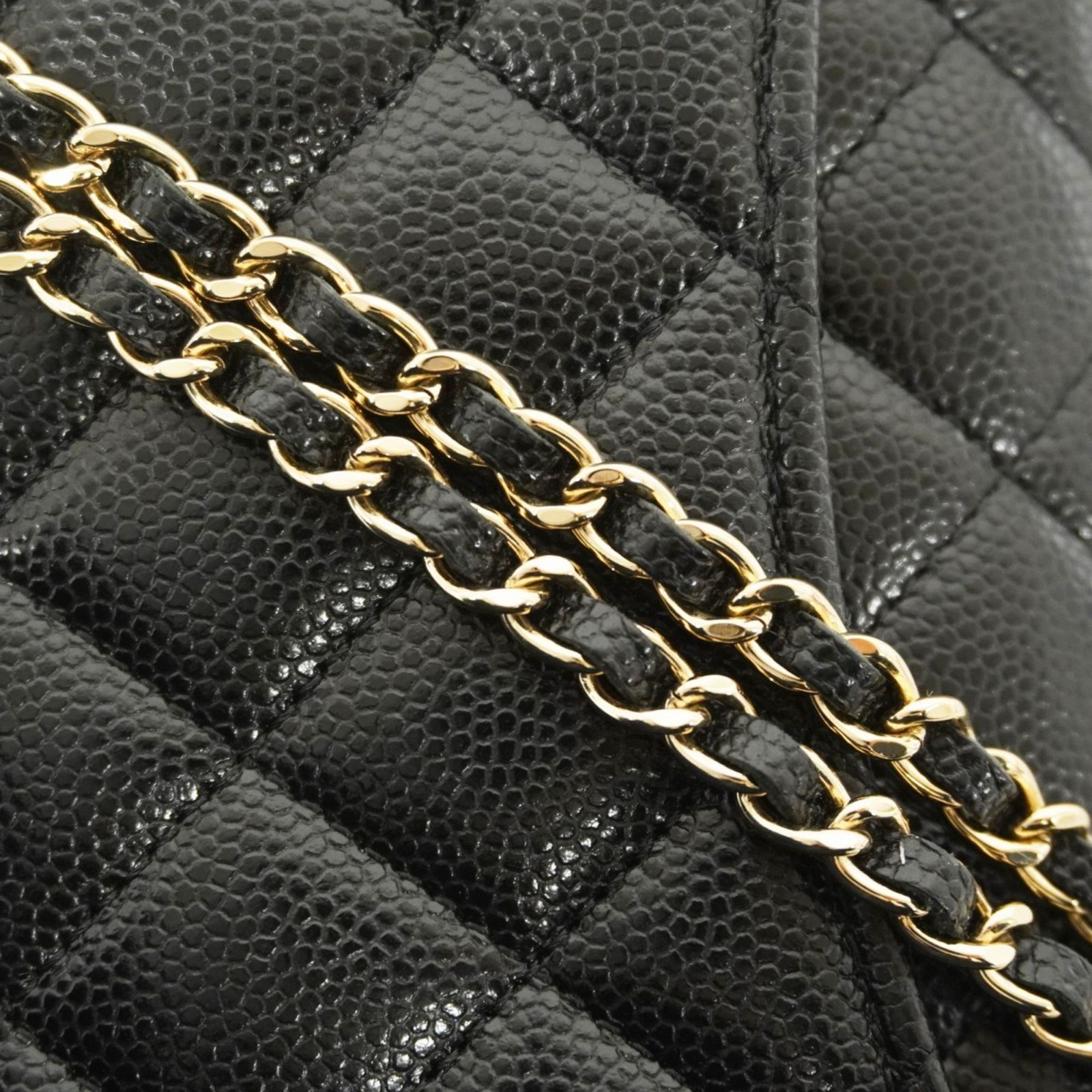 シャネル(Chanel) シャネル ショルダーバッグ マトラッセ チェーンショルダー キャビアスキン ブラック シャンパンレディース