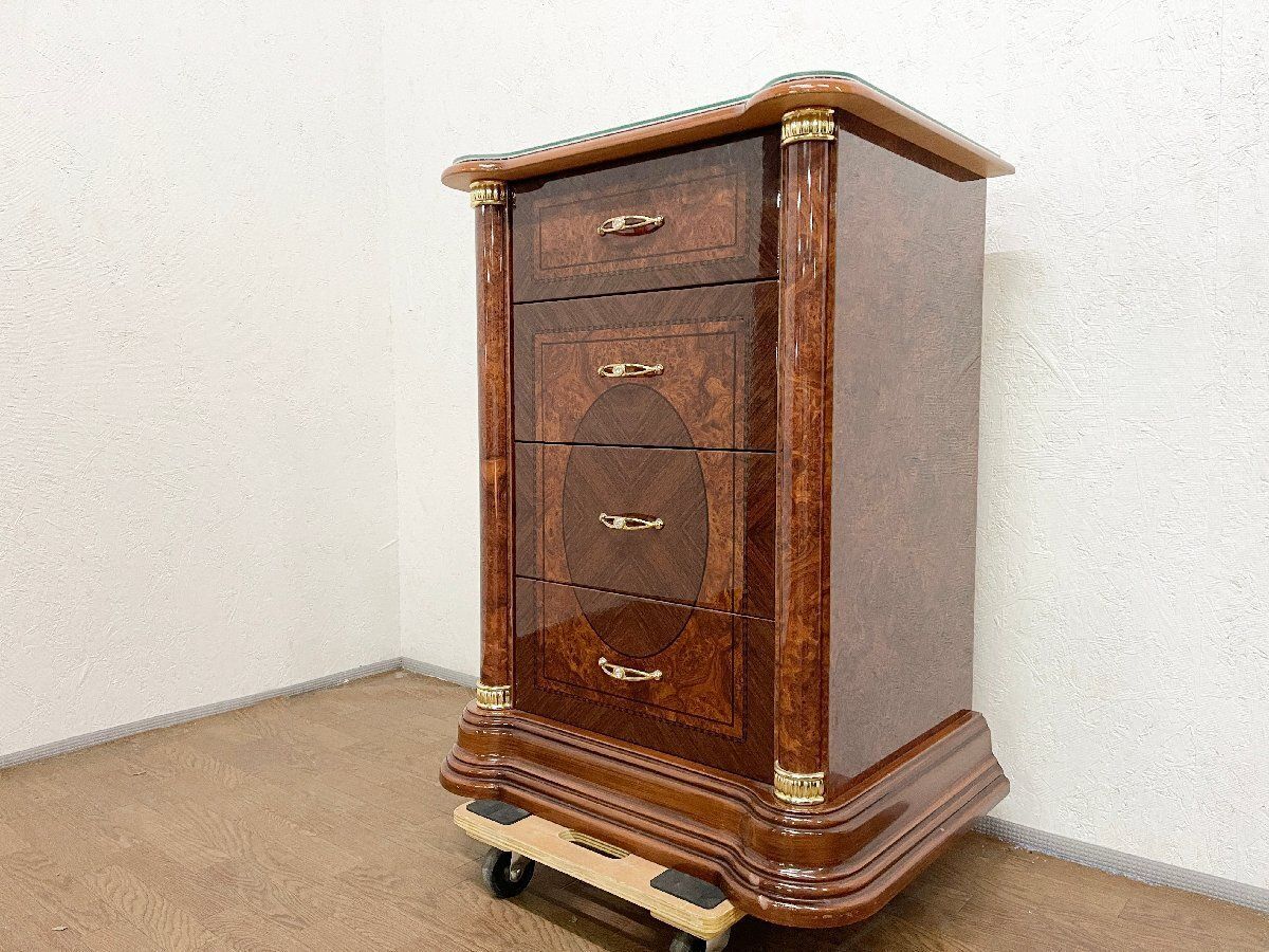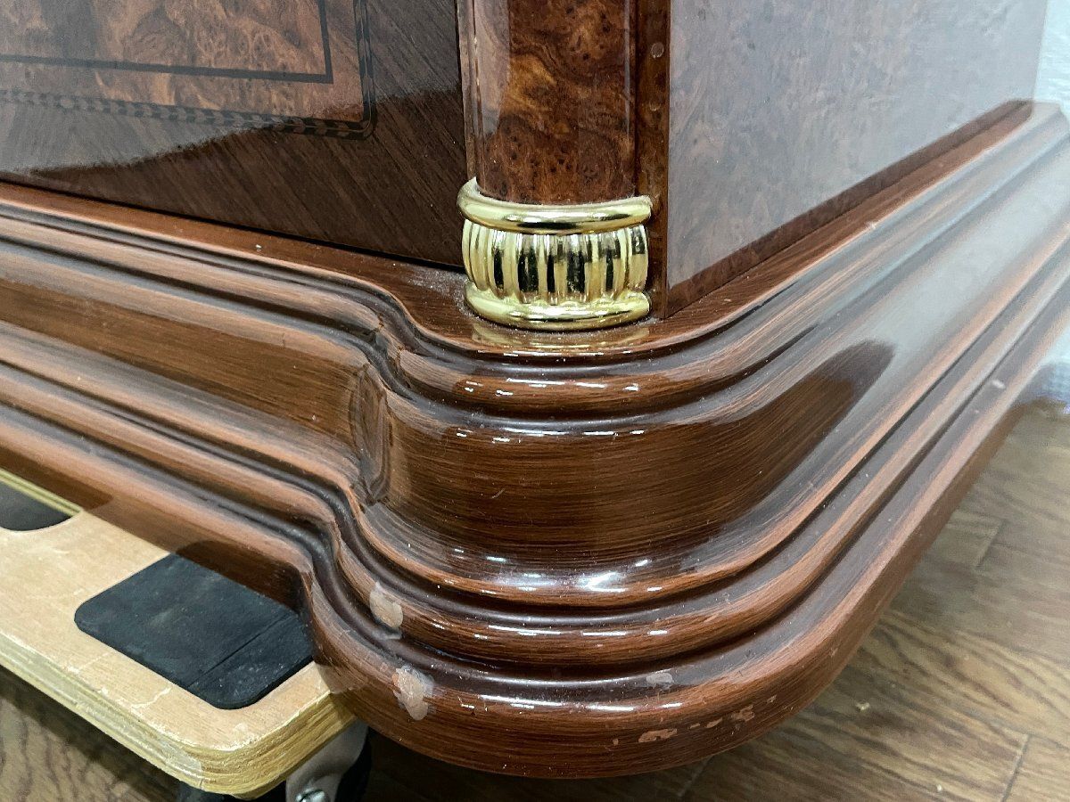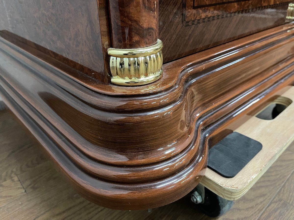 状態説明 気品あるウォールナット色に、美しい象嵌風模様とゴールド装飾が映える上質な一台。