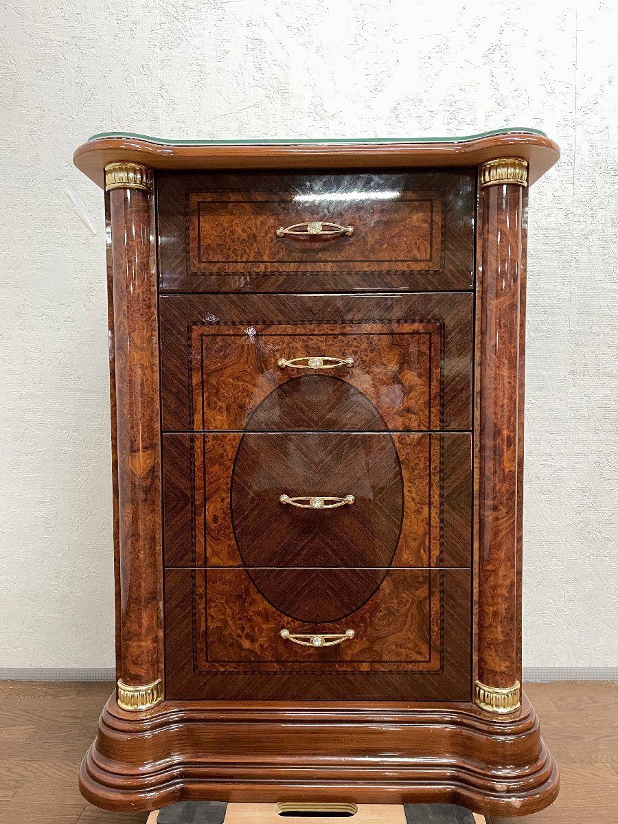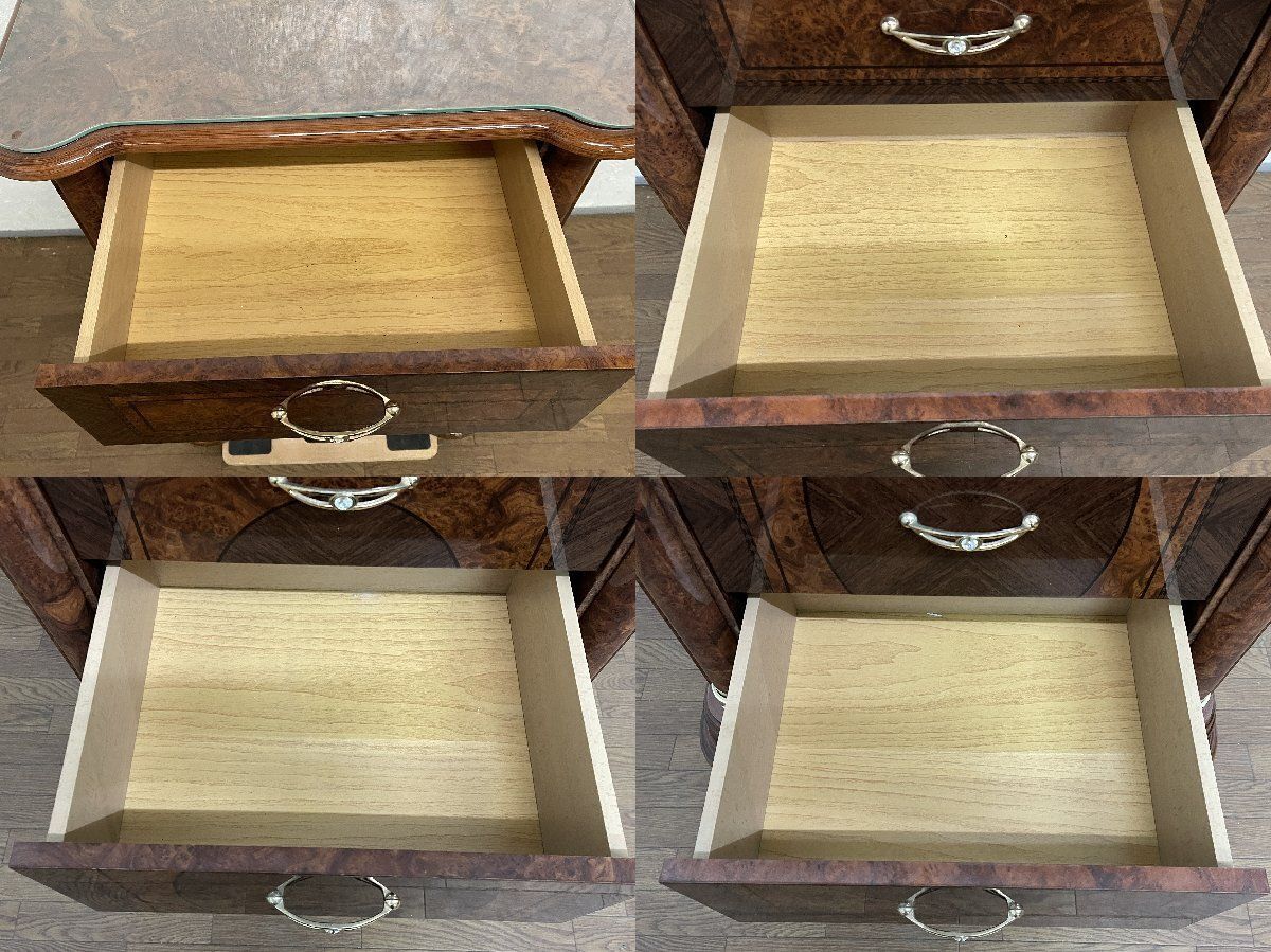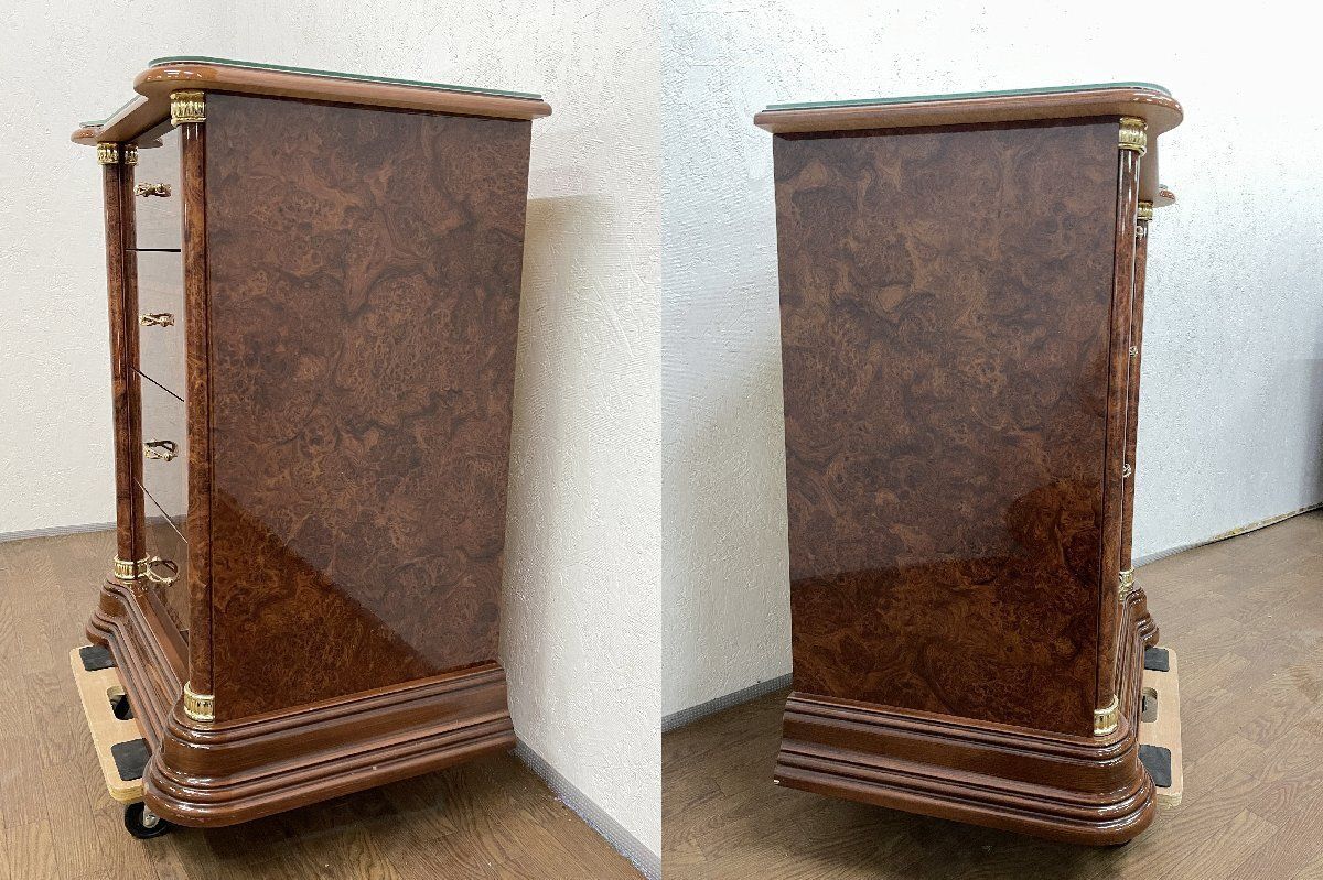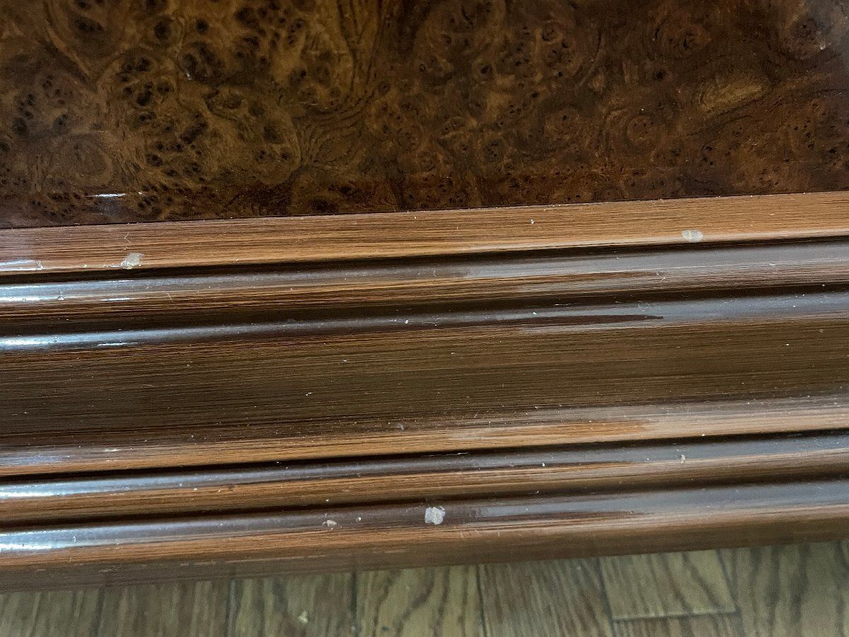 状態説明 気品あるウォールナット色に、美しい象嵌風模様とゴールド装飾が映える上質な一台。