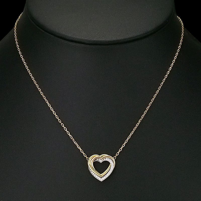 備考:3色のゴールドが織りなす優美なコントラストにハートのフォルムが可愛らしい、ダイヤモンドが煌めくネックレスです。トップに小スレが残っておりますが、こちらは仕上済商品の為、全体的に輝きのあるお品となっております。