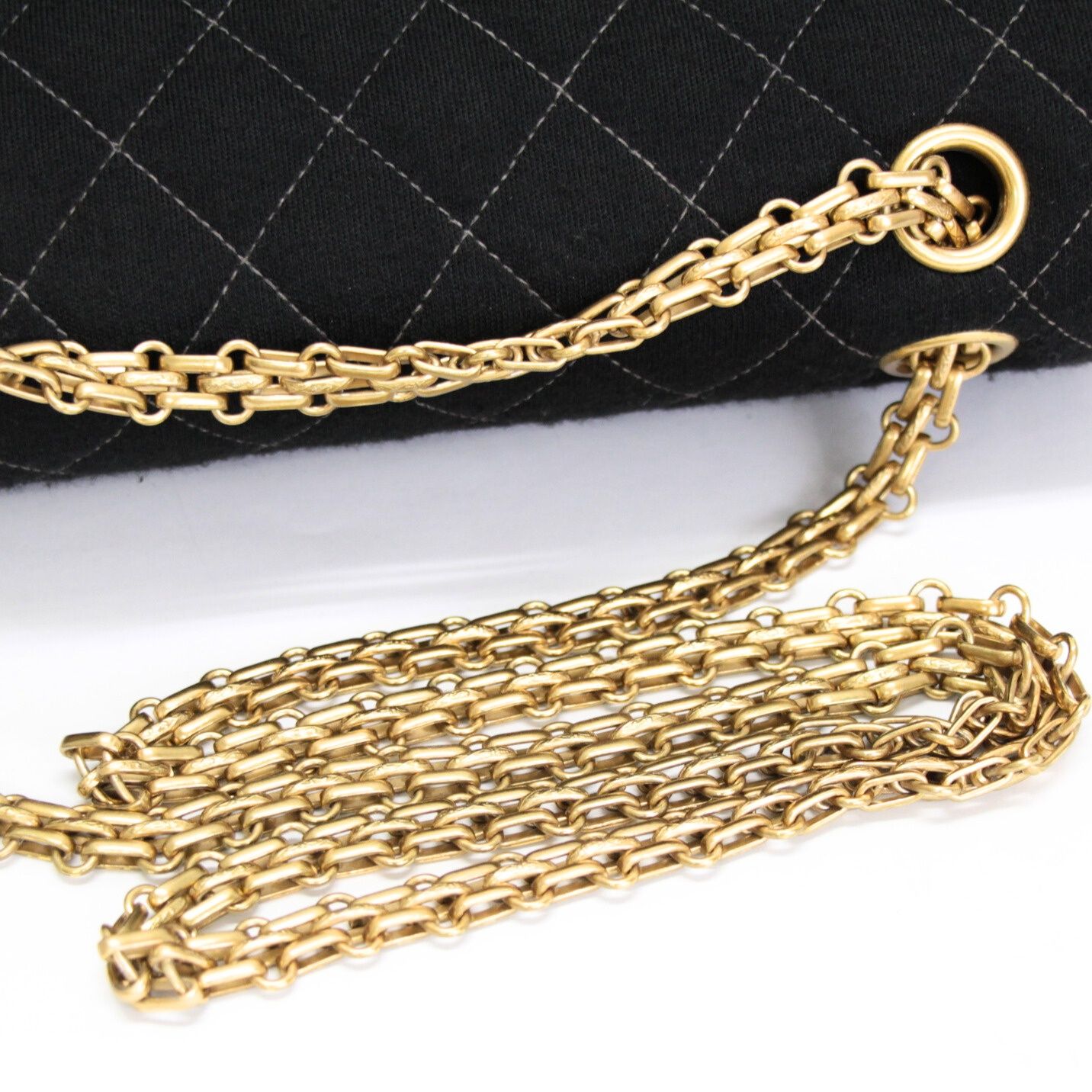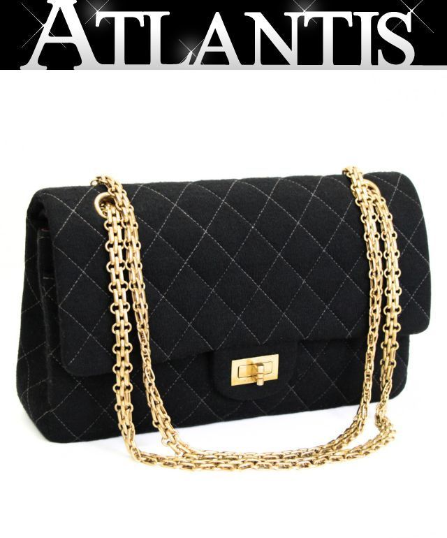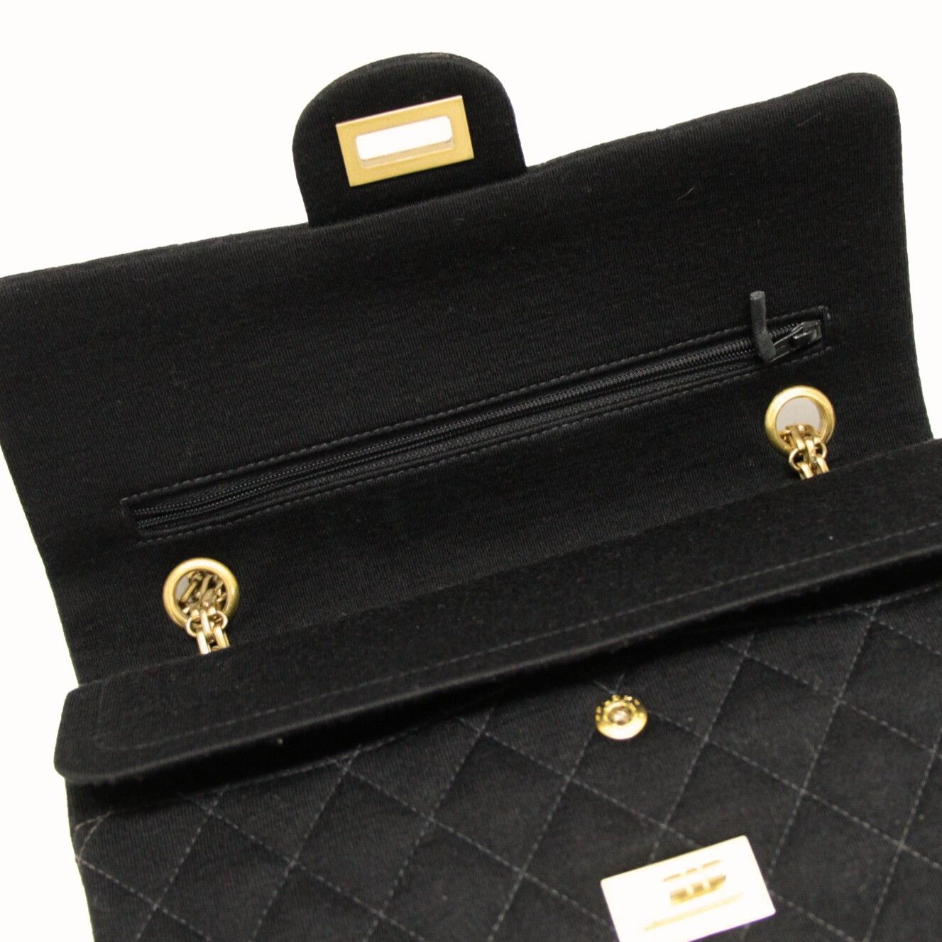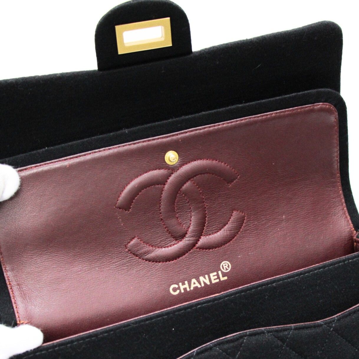 シャネル CHANEL 2.55 マトラッセ25 ダブルフラップ チェーンショルダーバッグ ジャージー 黒 G金具 5番台【73084】