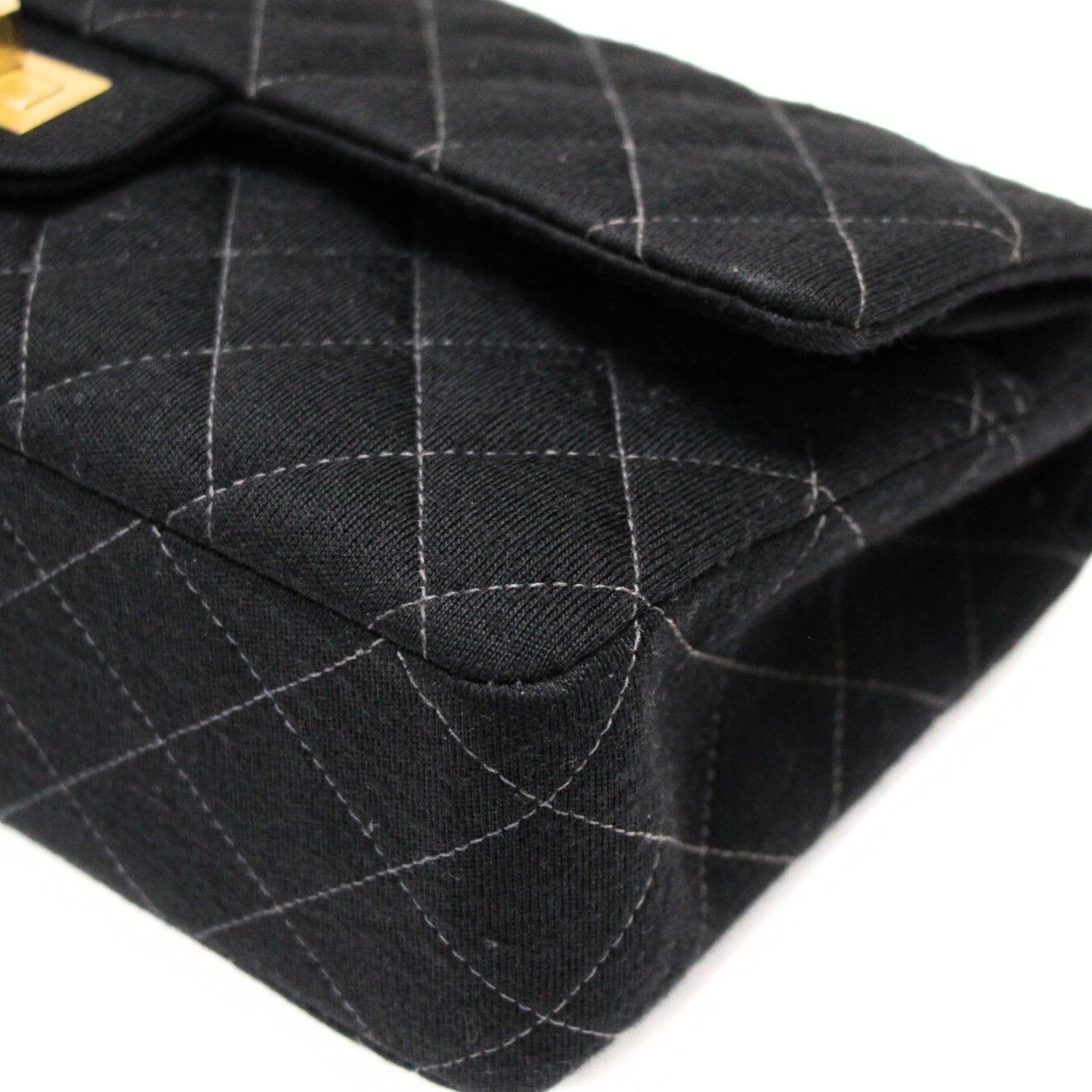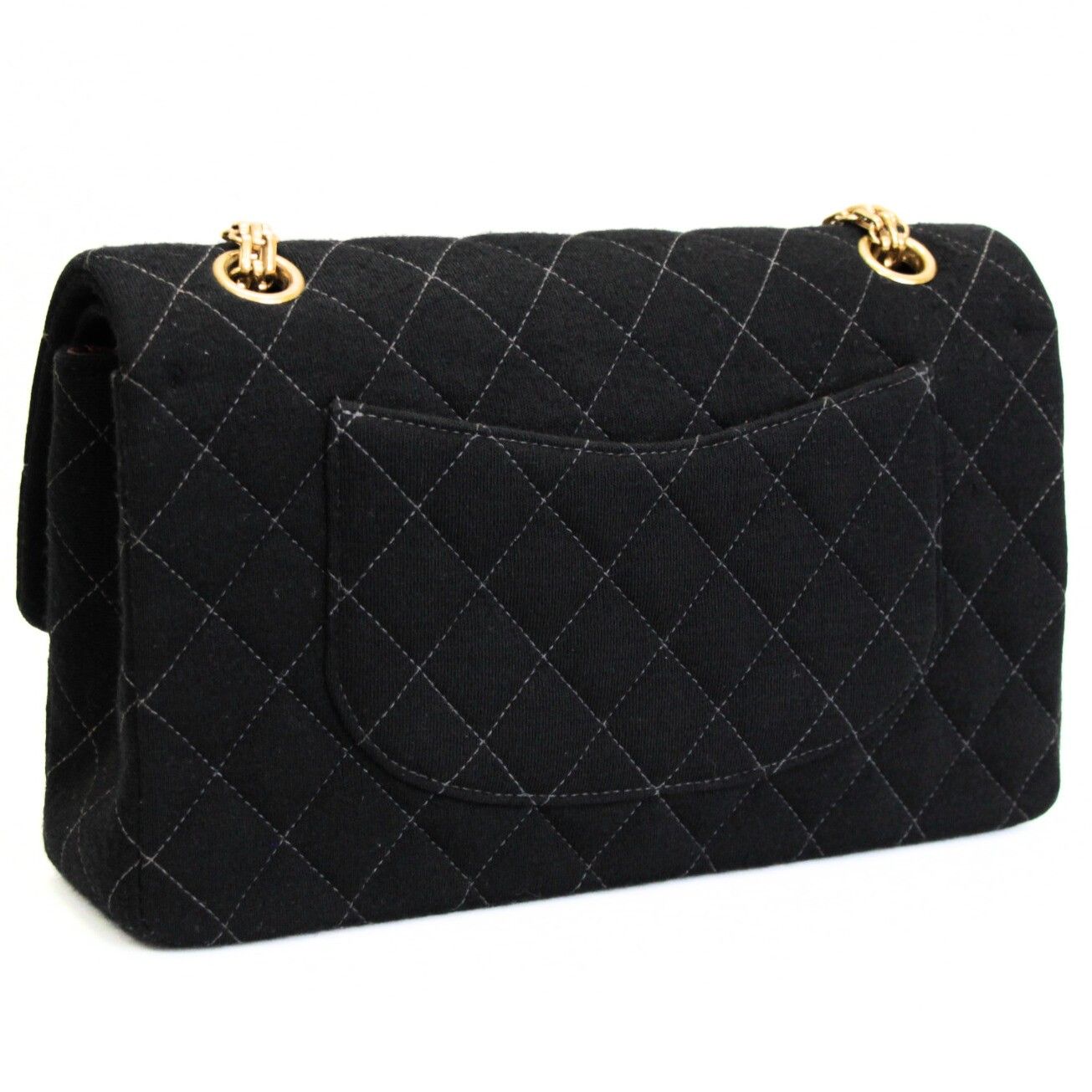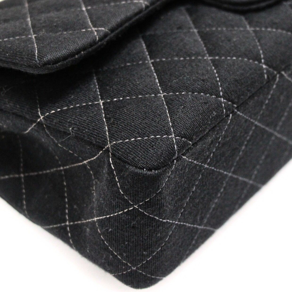 シャネル CHANEL 2.55 マトラッセ25 ダブルフラップ チェーンショルダーバッグ ジャージー 黒 G金具 5番台【73084】