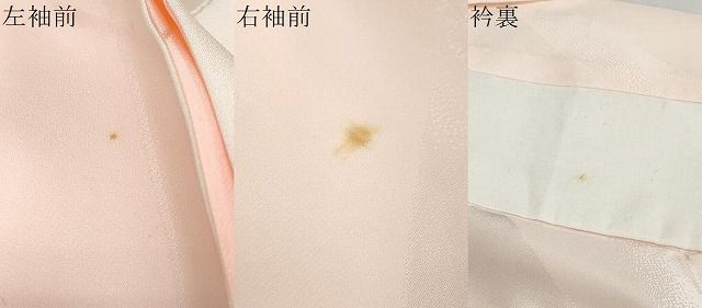 状態は接写画像のように左袖前・右袖前・衿裏に薄い汚れがございますが