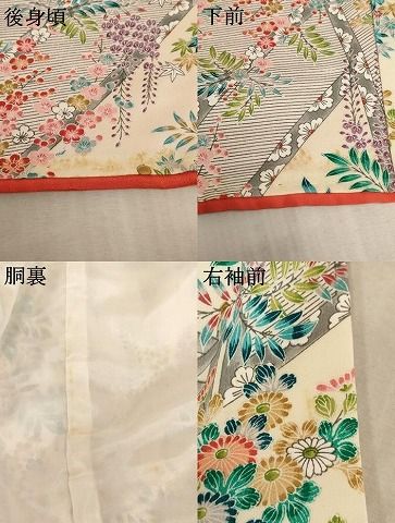 着物【正絹】の状態は接写画像のように後身頃・下前・胴裏・右袖前に汚れがございますが