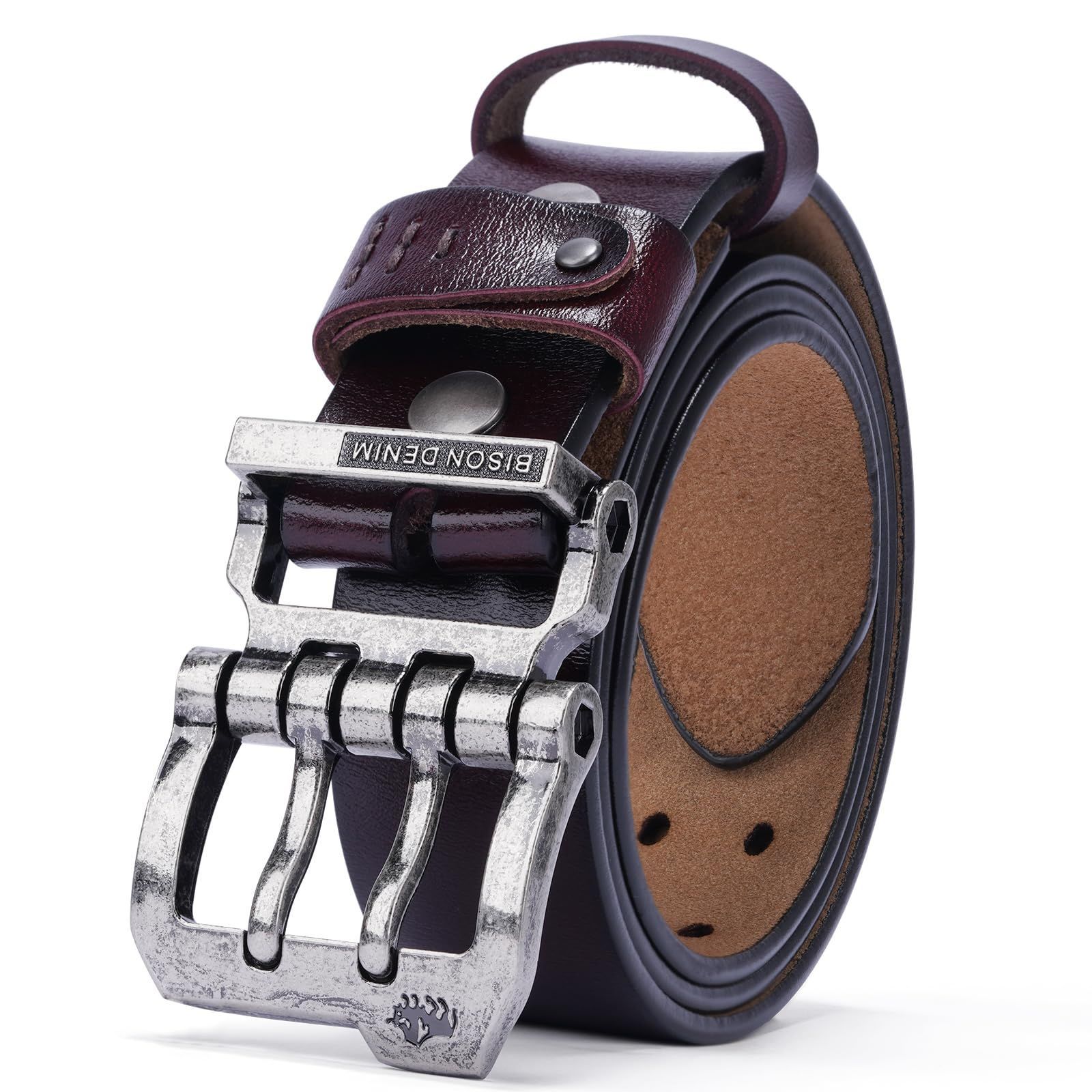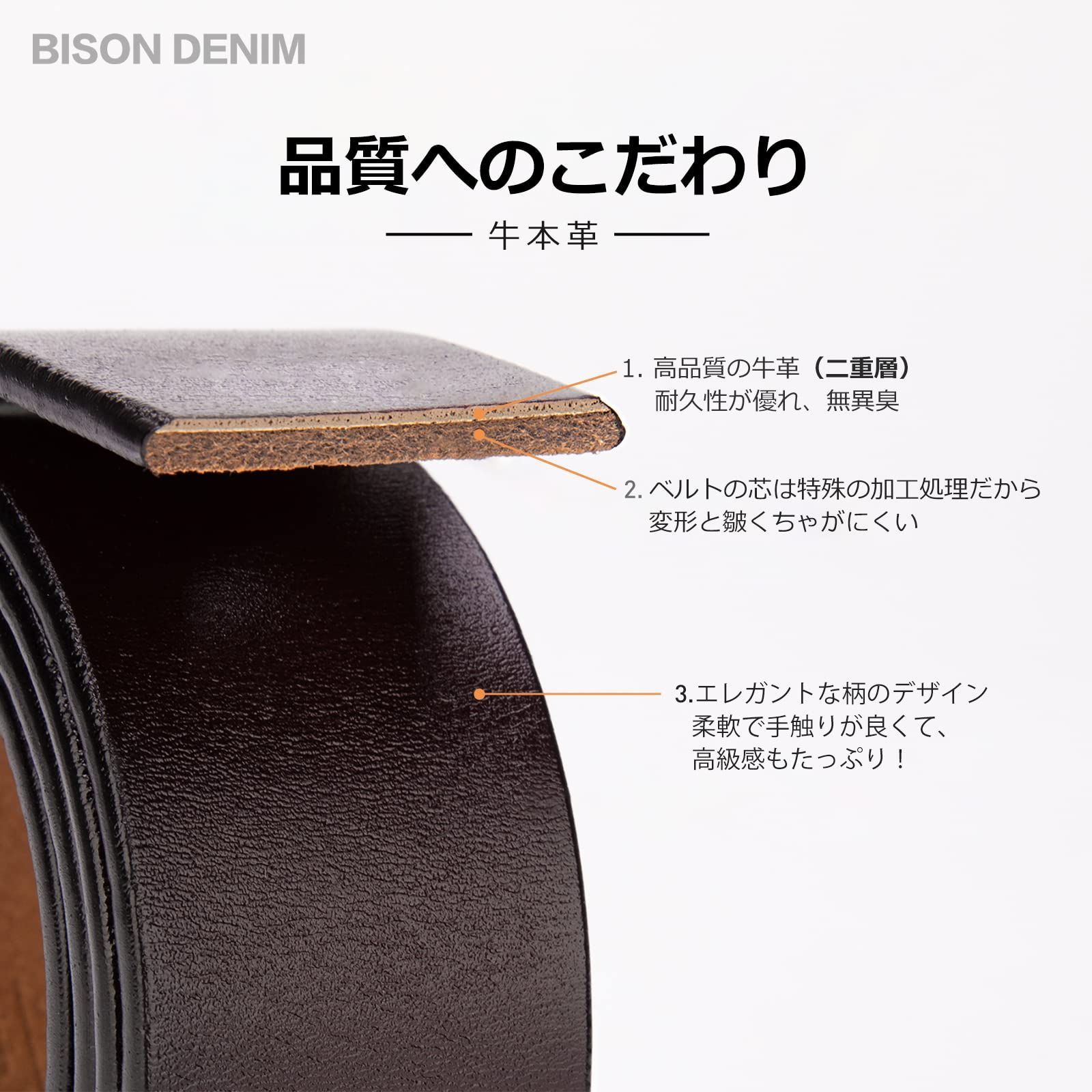 [BISON DENIM]ベルト メンズ 本革 大きいサイズ メンズ ベルト カジュアル 革ベルト ジーンズ用ベルト 作業用ベルト 紳士用ベルト ?さ調節可能 ?さ105cm~130cm 化粧箱付き 父の日 プレゼント
