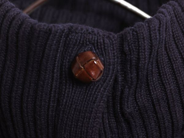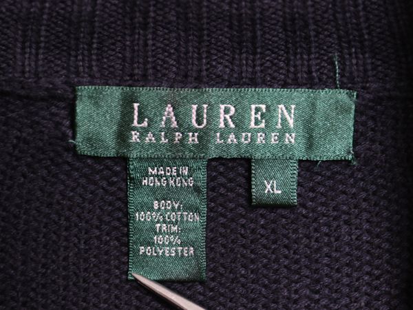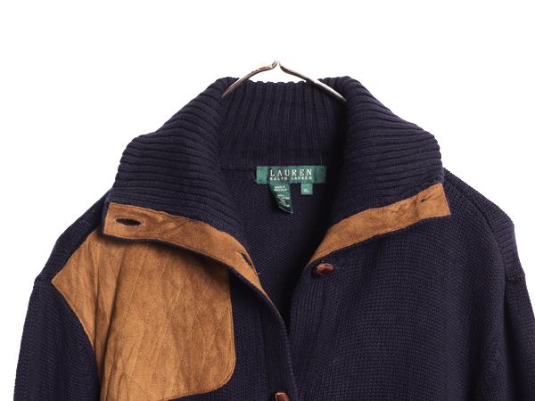 90s ローレン ラルフローレン ニット カーディガン レディース XL オールド コットン ハイネック ハンティング セーター 大きいサイズ 濃紺