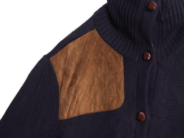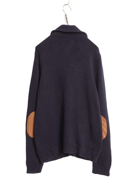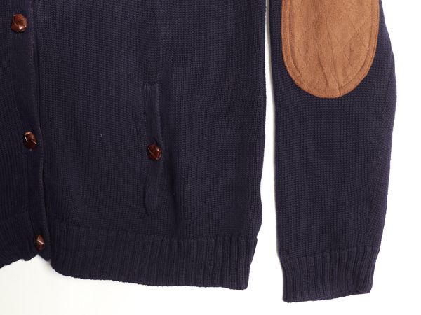 古着 中古 90's 90年代 POLO RALPH LAUREN ニットカーディガン 羽織り 前開き ジャケット ショルダー エルボーパッチ ネイビー 紺